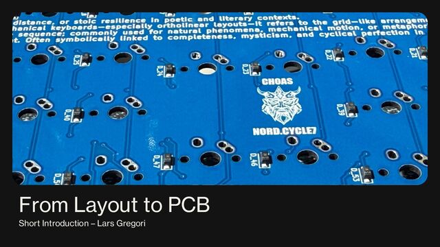 A short intro to the process from a mechanical keyboard layout to a PCB for the Mechanicon 2025 conference in Frankfurt.