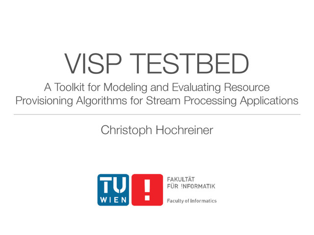 processing operator library ‣Integrate topologies and data from the DEBS Grand Challenges ‣Provide the VISP Testbed as a Service 26