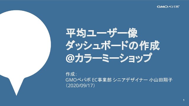1 平均ユーザー像 ダッシュボードの作成 @カラーミーショップ 作成: GMOペパボ EC事業部 シニアデザイナー 小山田翔子 (2020/09/17)