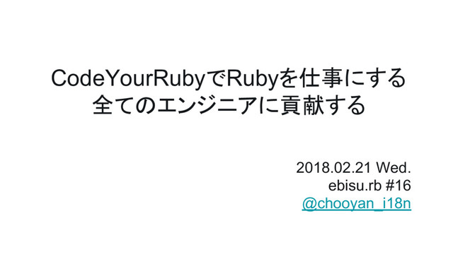 CodeYourRubyでRubyを仕事にする 全てのエンジニアに貢献する 2018.02.21 Wed. ebisu.rb #16 @chooyan_i18n