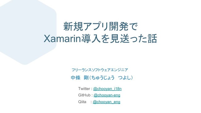 フリーランスソフトウェアエンジニア 中條 剛(ちゅうじょう つよし) Twitter : @chooyan_i18n GitHub : @chooyan-eng Qiita :