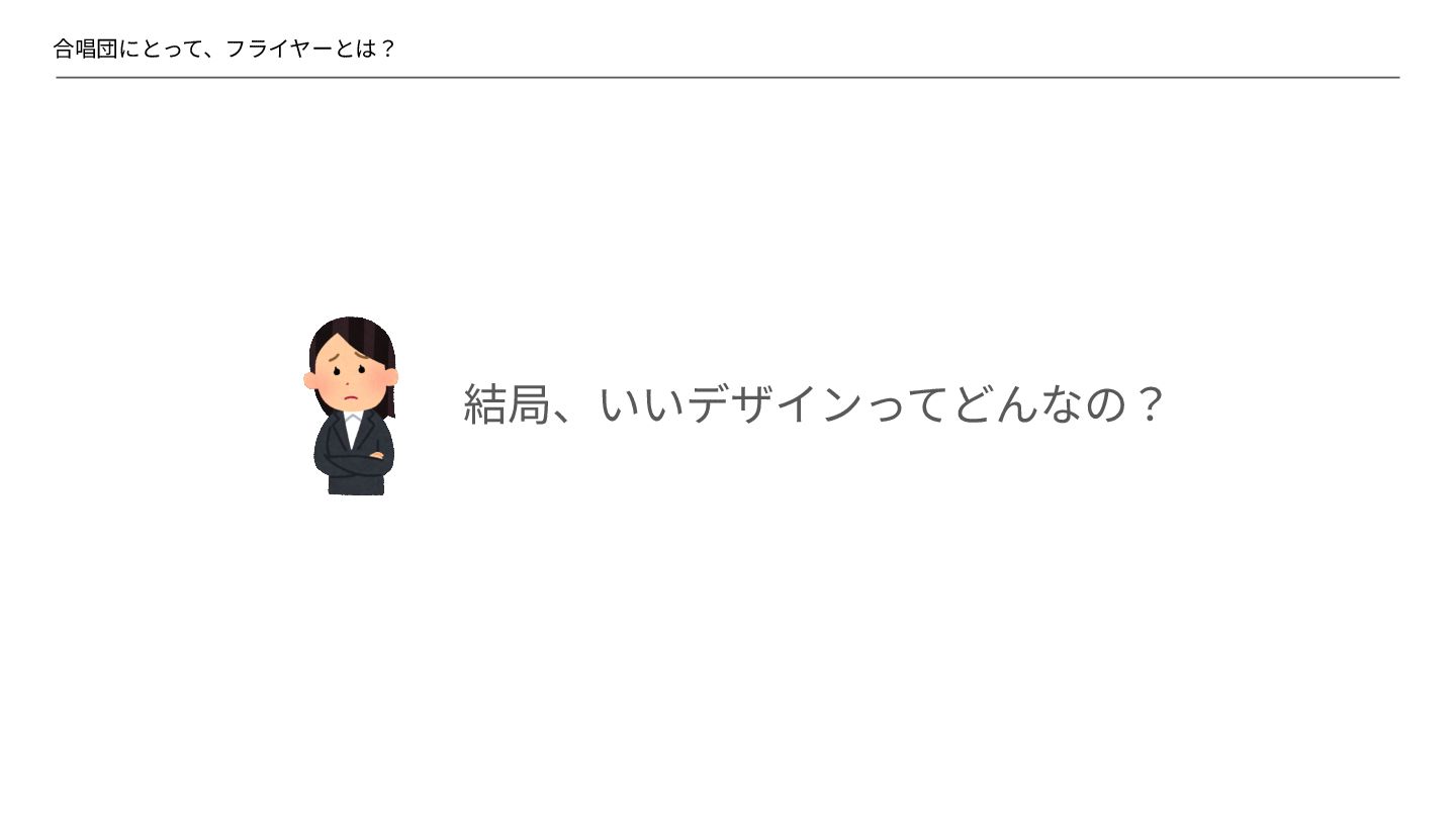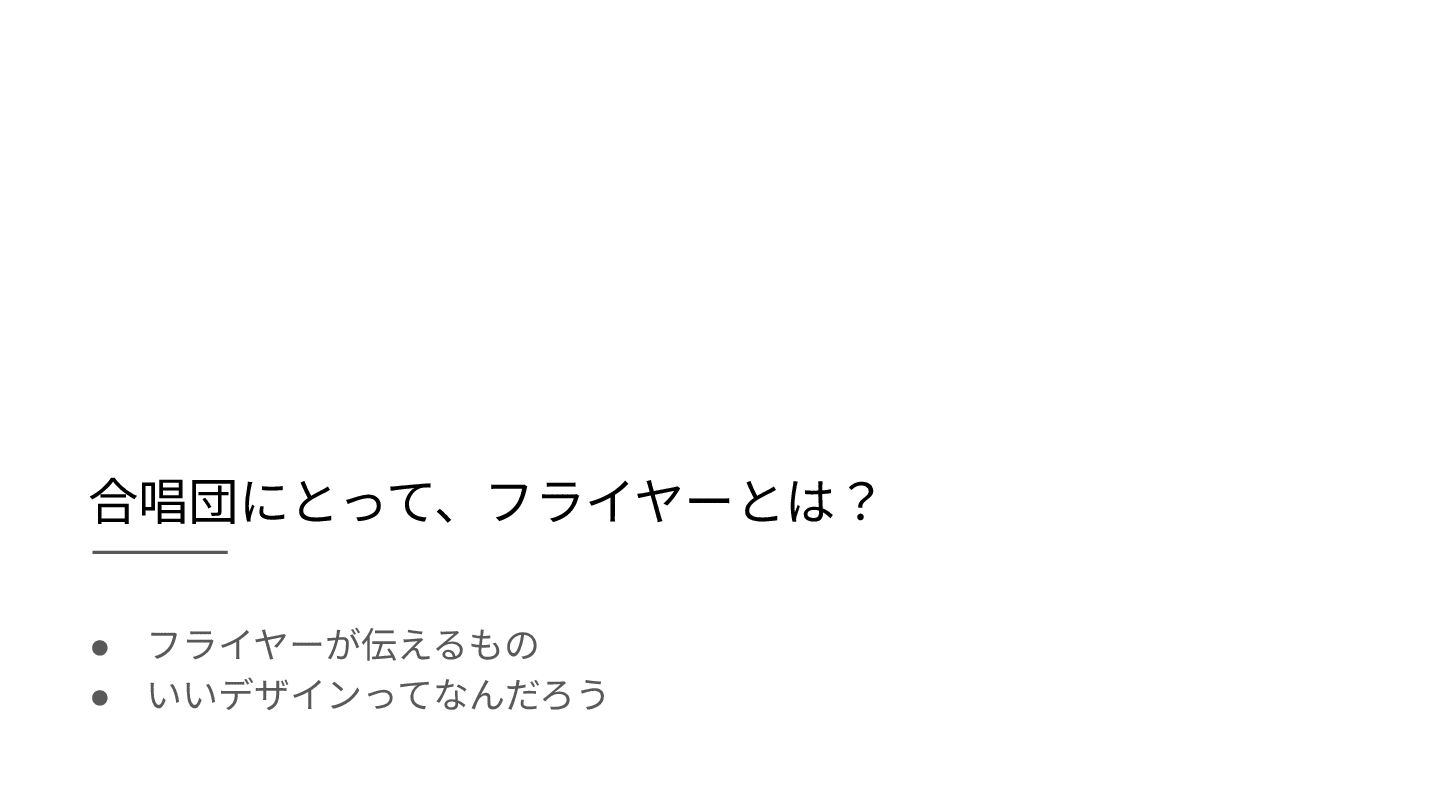 合唱団にとって、フライヤーとは? • フライヤーが伝えるもの • いいデザインってなんだろう