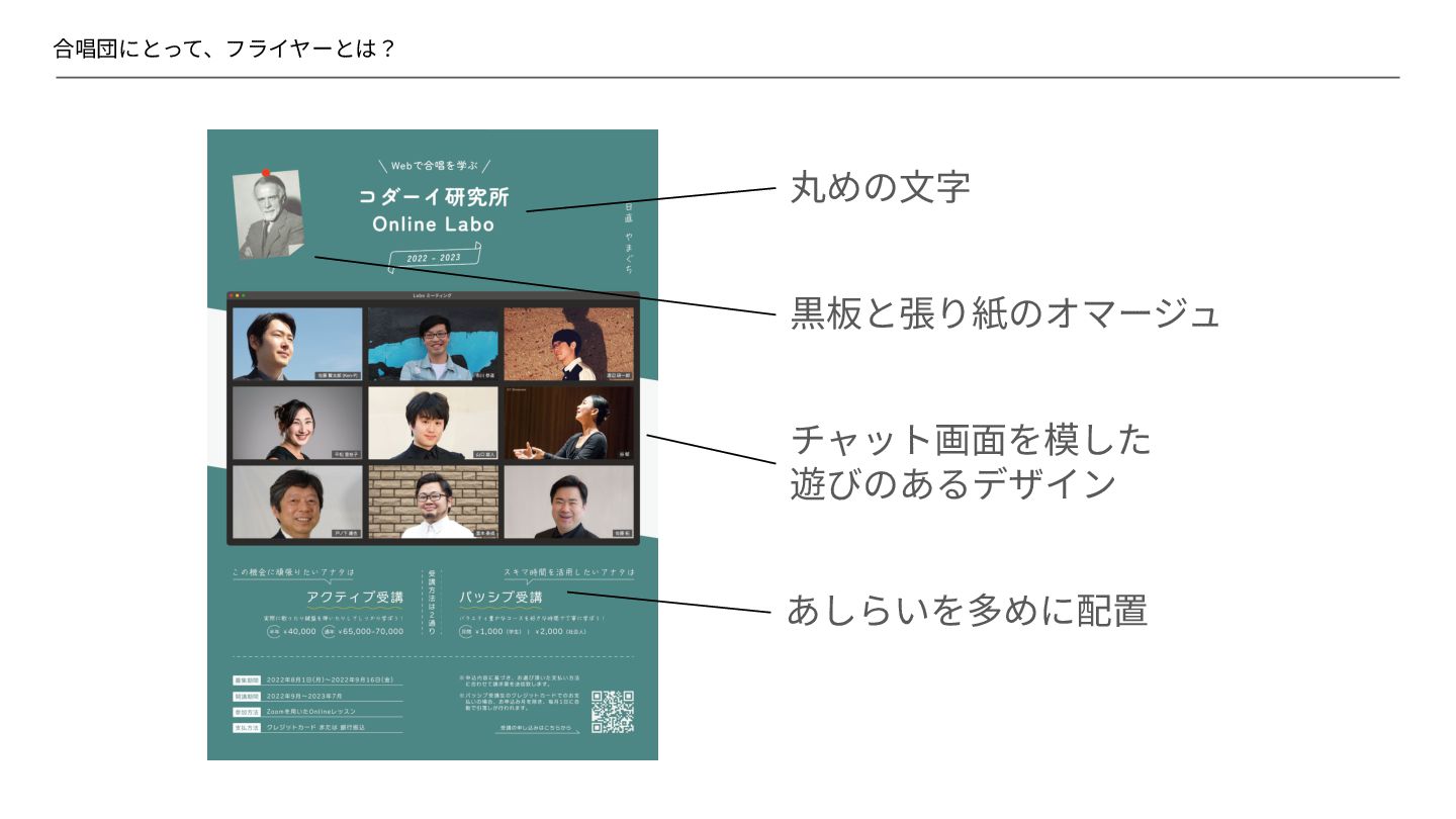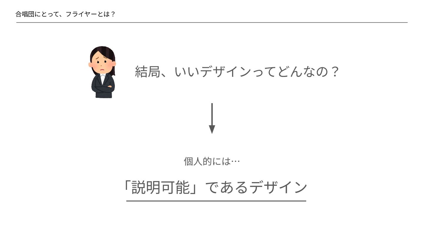 合唱団にとって、フライヤーとは? 結局、いいデザインってどんなの? 「説明可能」であるデザイン 個⼈的には…