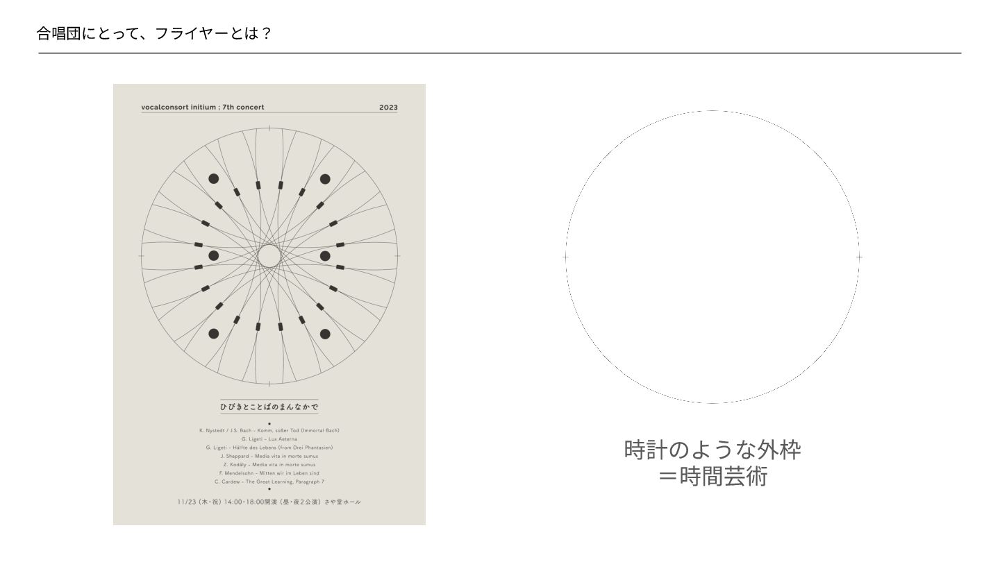 合唱団にとって、フライヤーとは? 時計のような外枠 =時間芸術