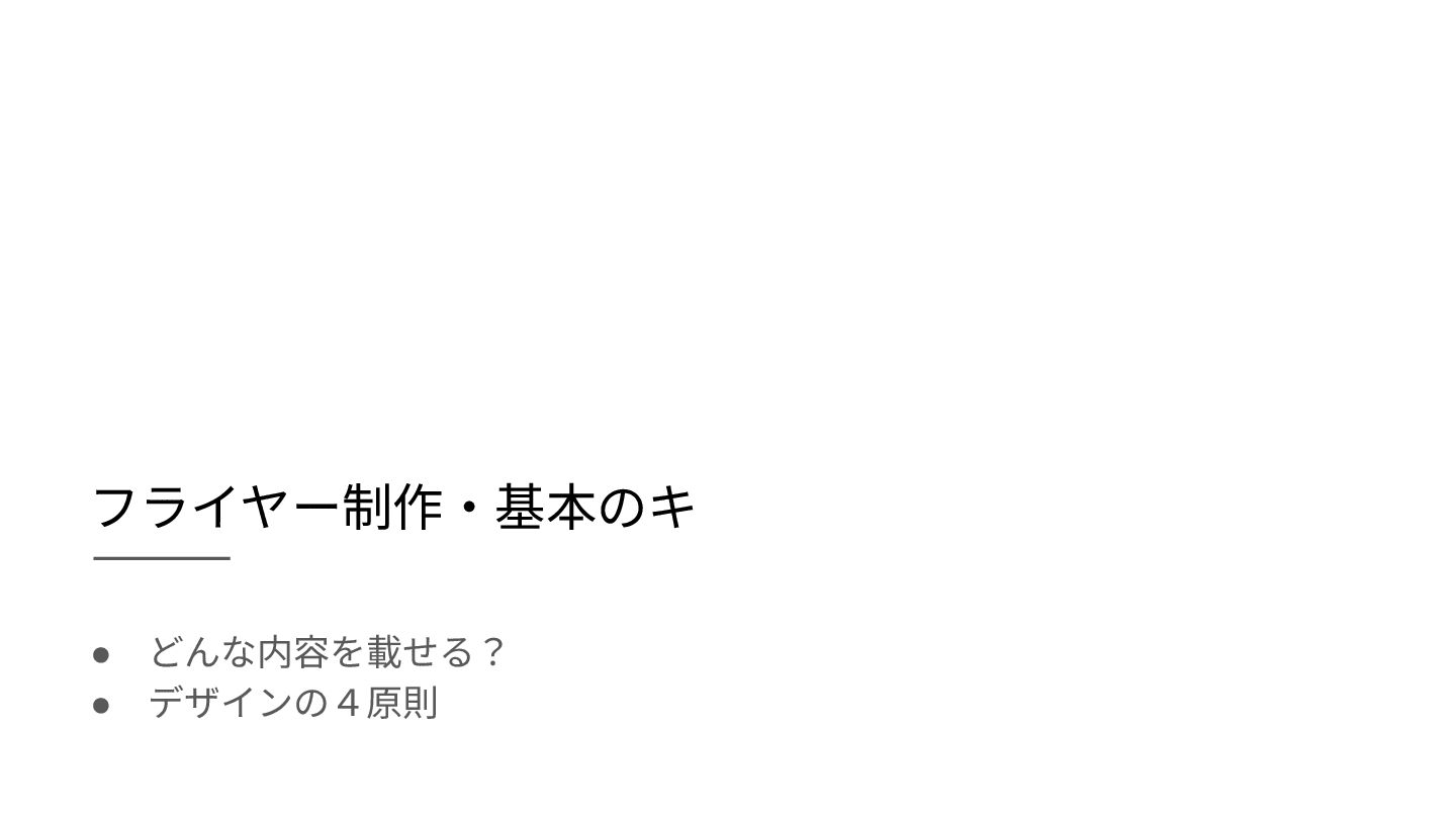 フライヤー制作‧基本のキ • どんな内容を載せる? • デザインの4原則