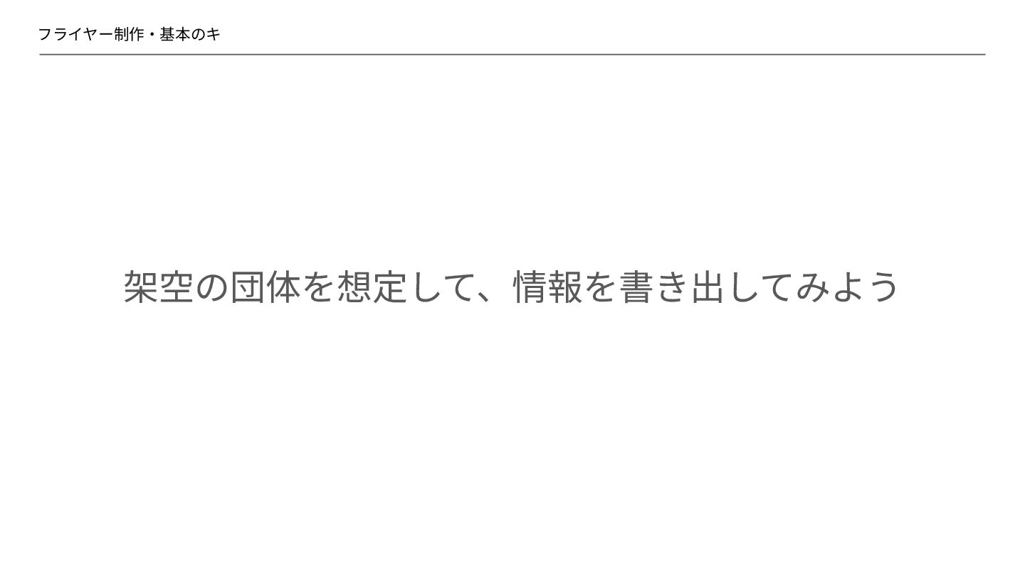 フライヤー制作‧基本のキ 架空の団体を想定して、情報を書き出してみよう