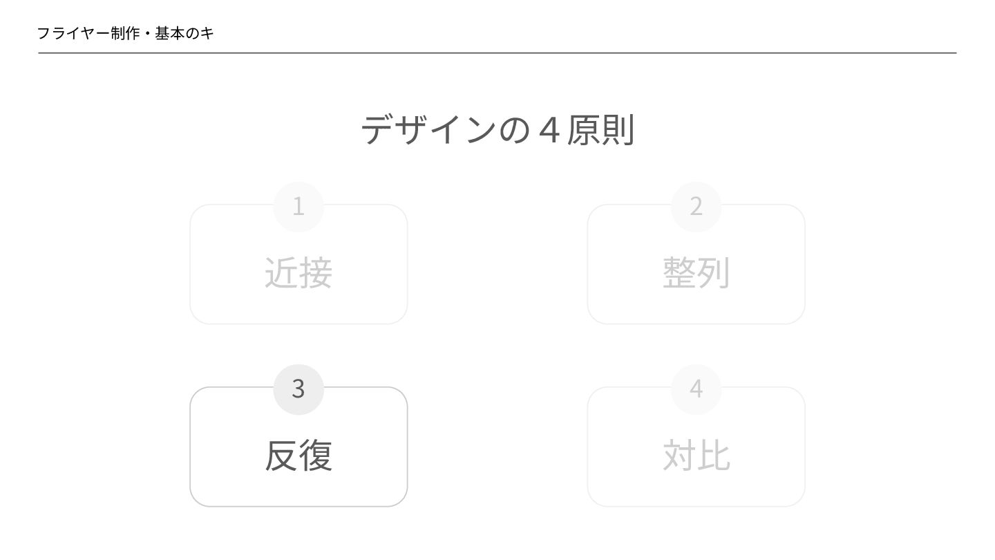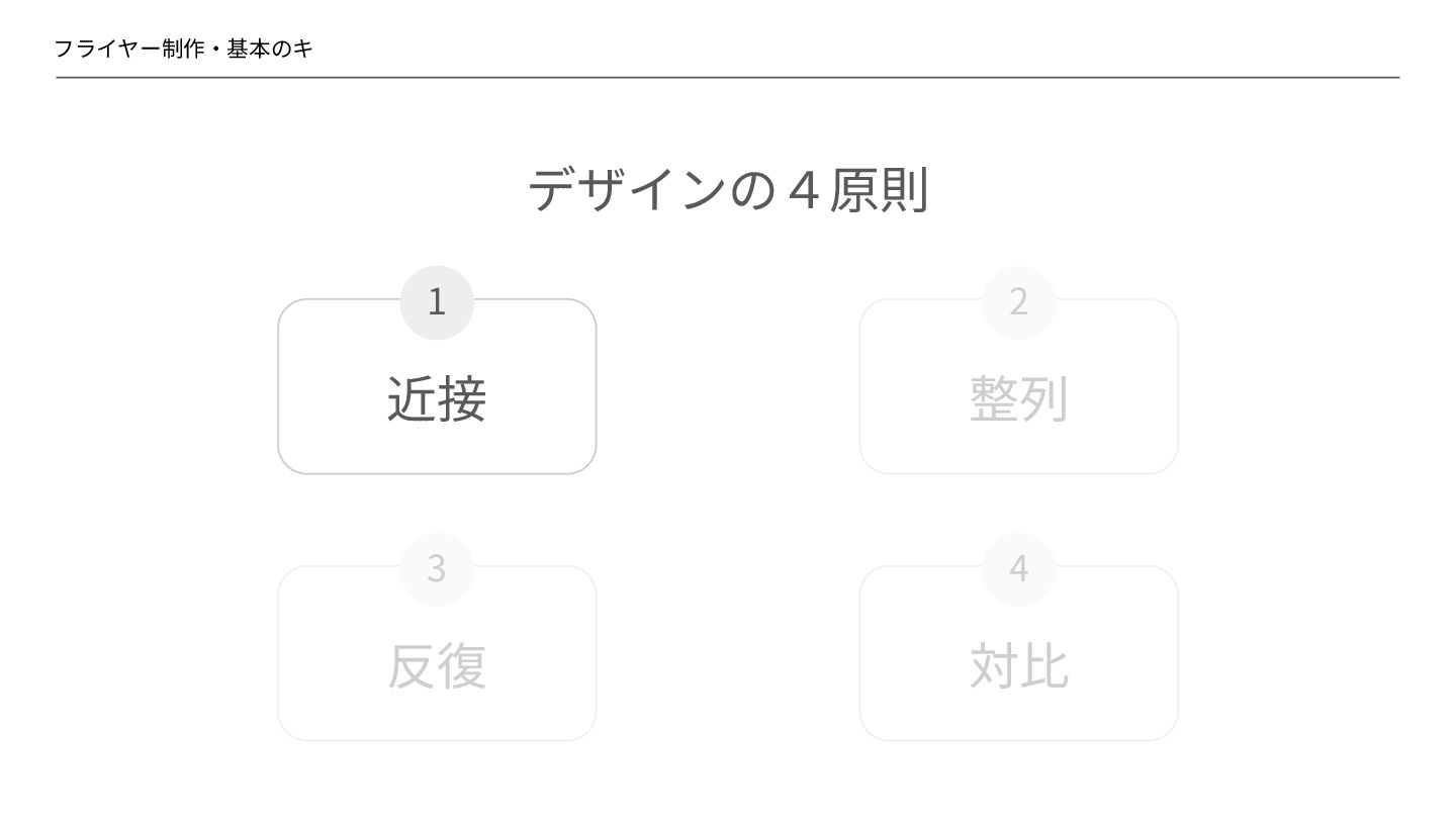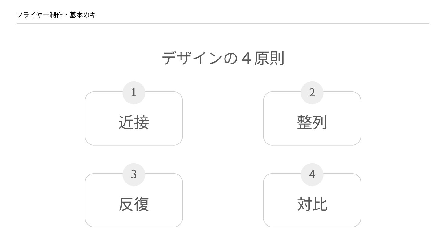 フライヤー制作‧基本のキ デザインの4原則 1 近接 2 整列 3 反復 4 対⽐