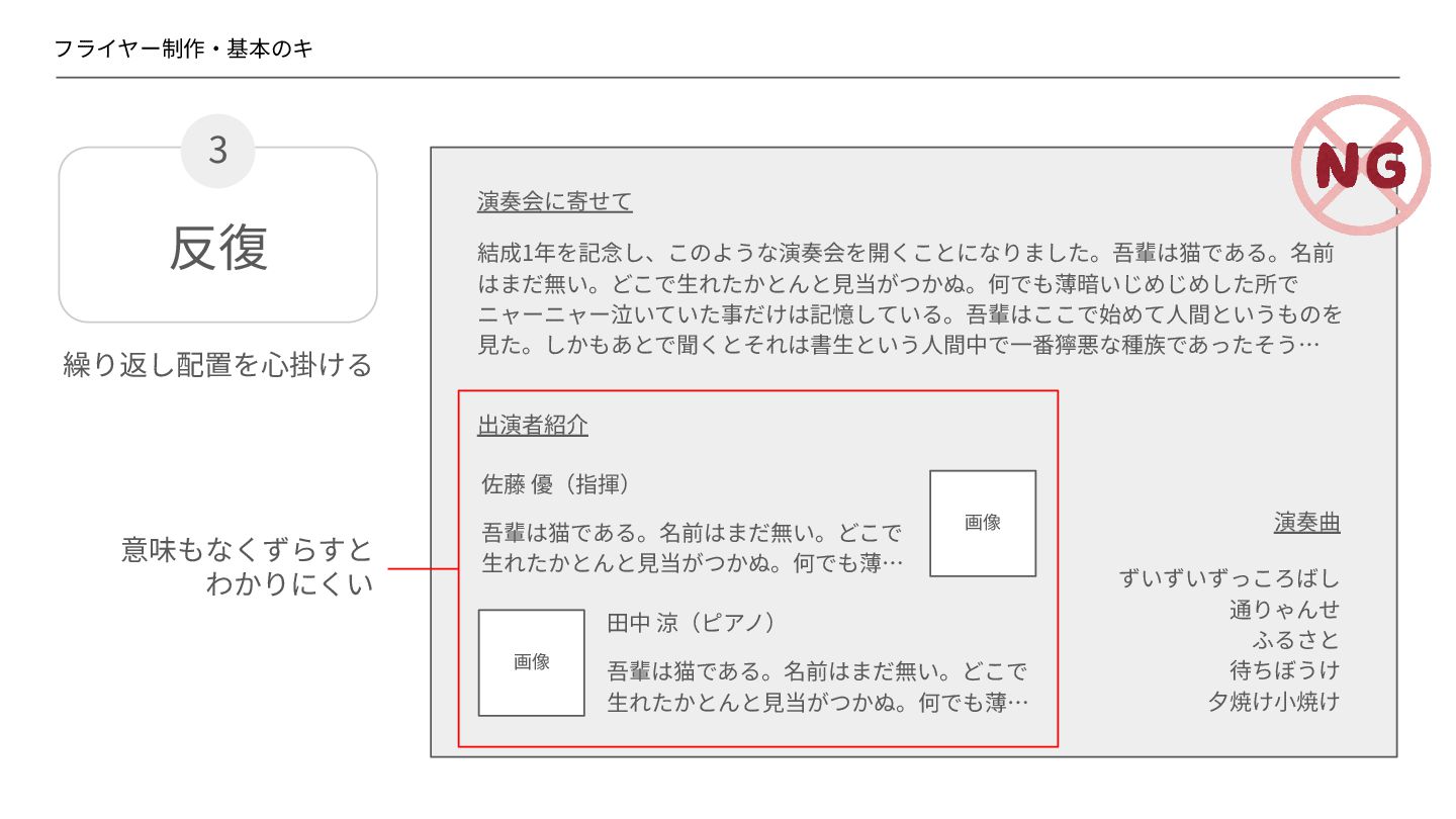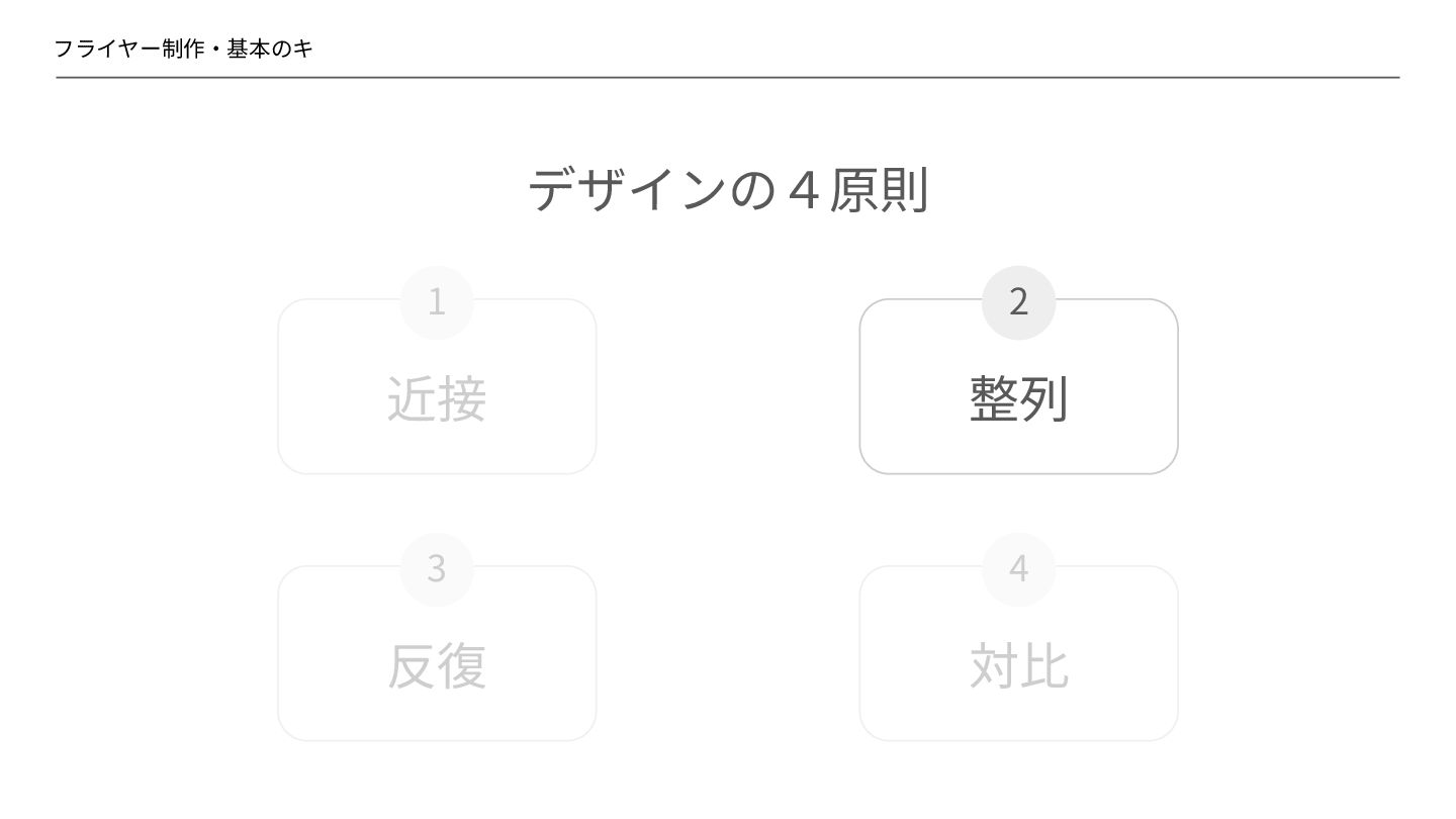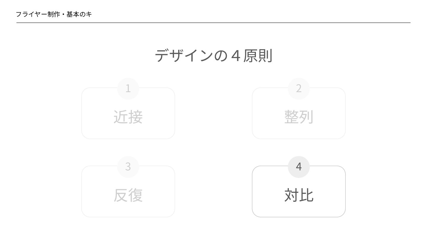 フライヤー制作‧基本のキ デザインの4原則 1 近接 2 整列 3 反復 4 対⽐