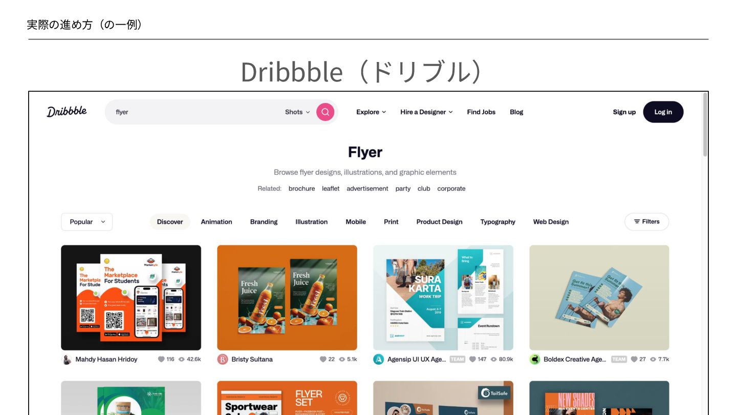 実際の進め⽅(の⼀例) Dribbble(ドリブル)