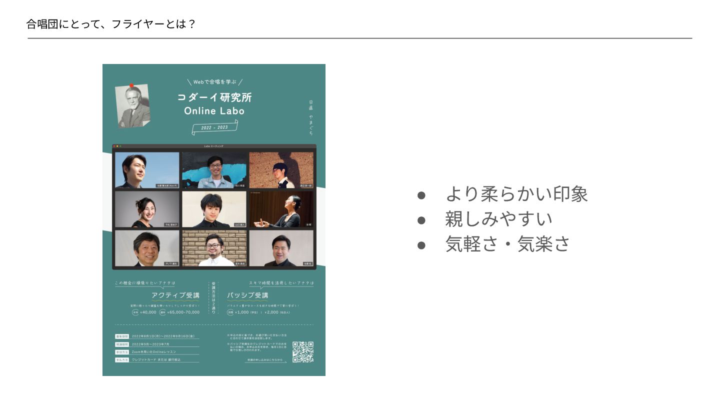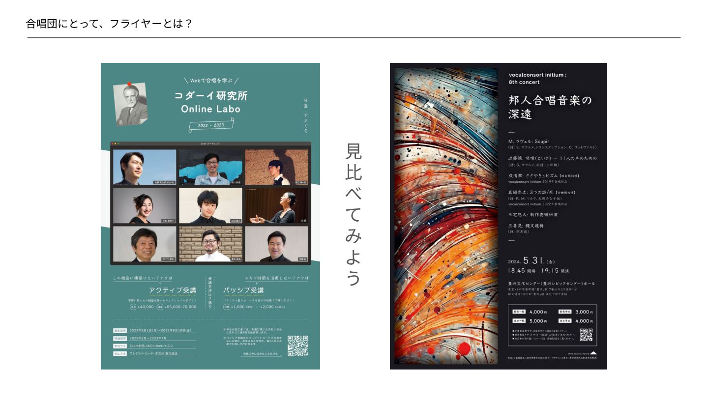 合唱団にとって、フライヤーとは? ⾒ ⽐ べ て み よ う