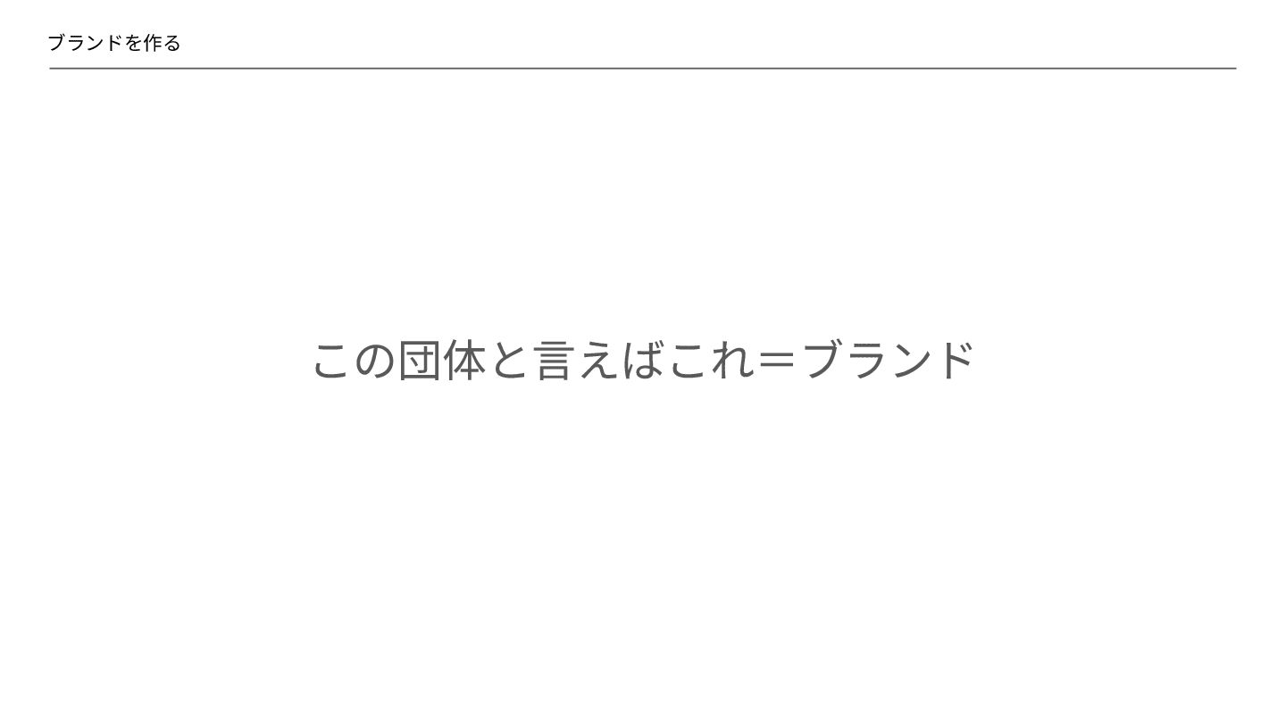 ブランドを作る この団体と⾔えばこれ=ブランド