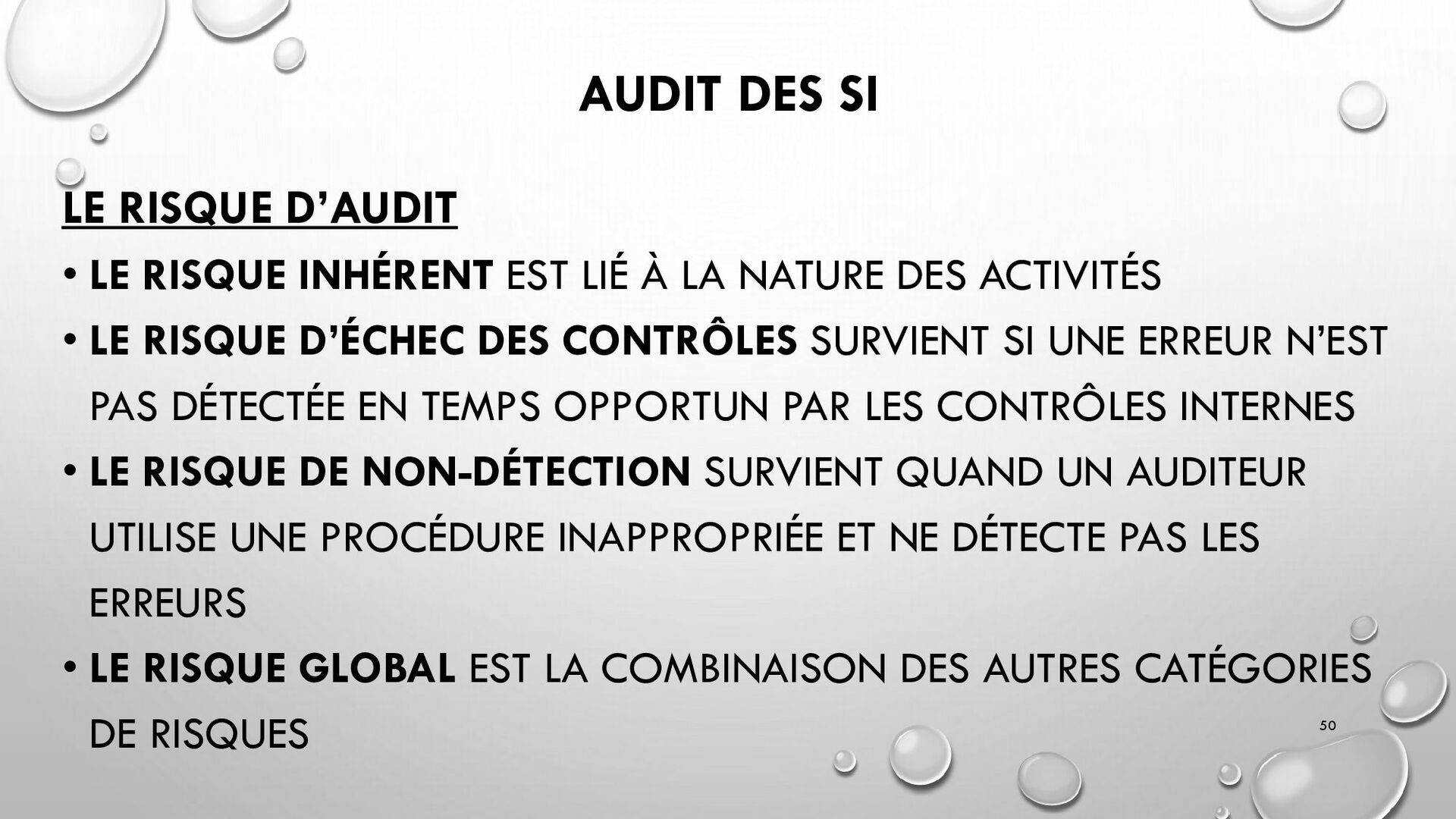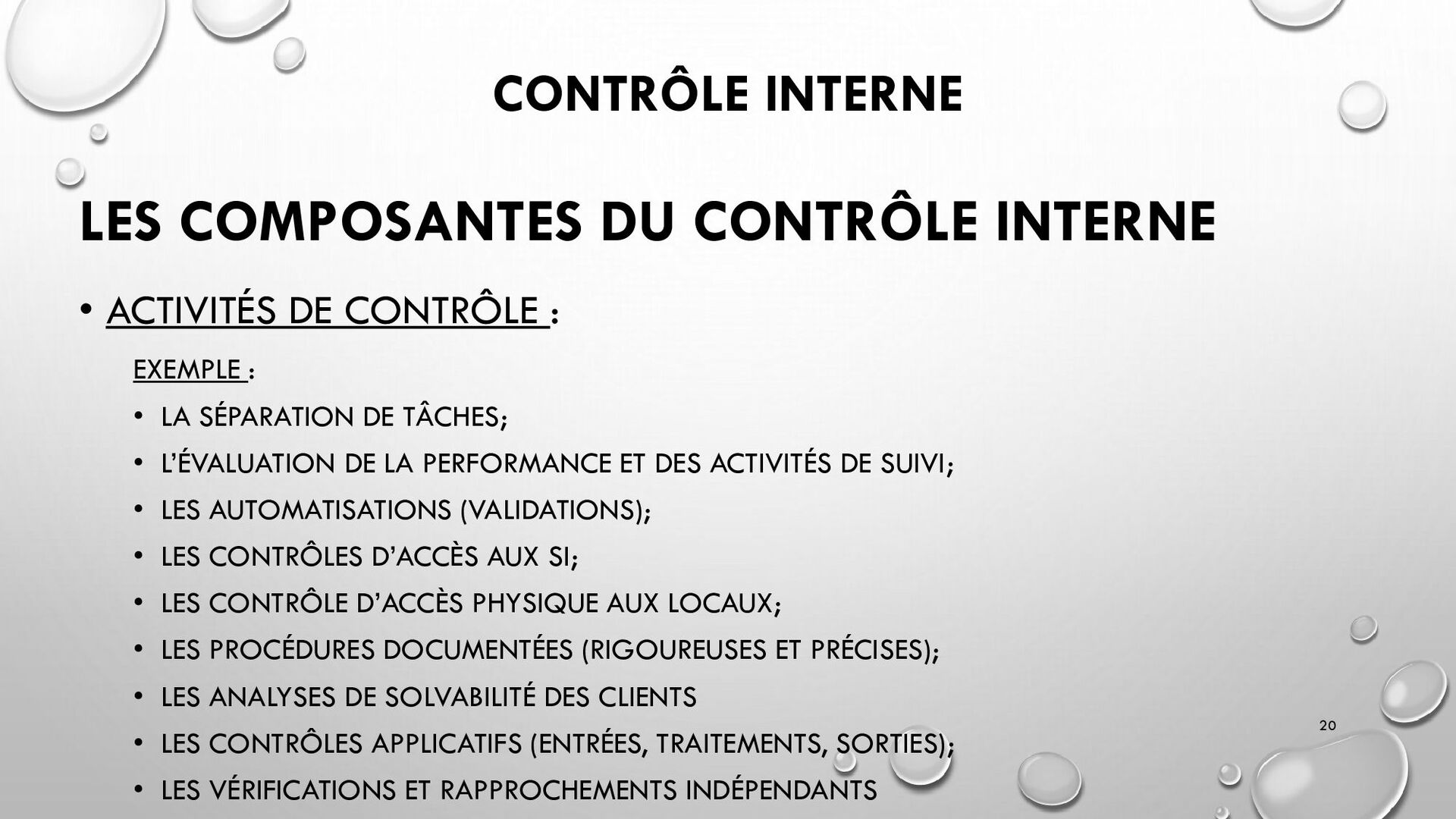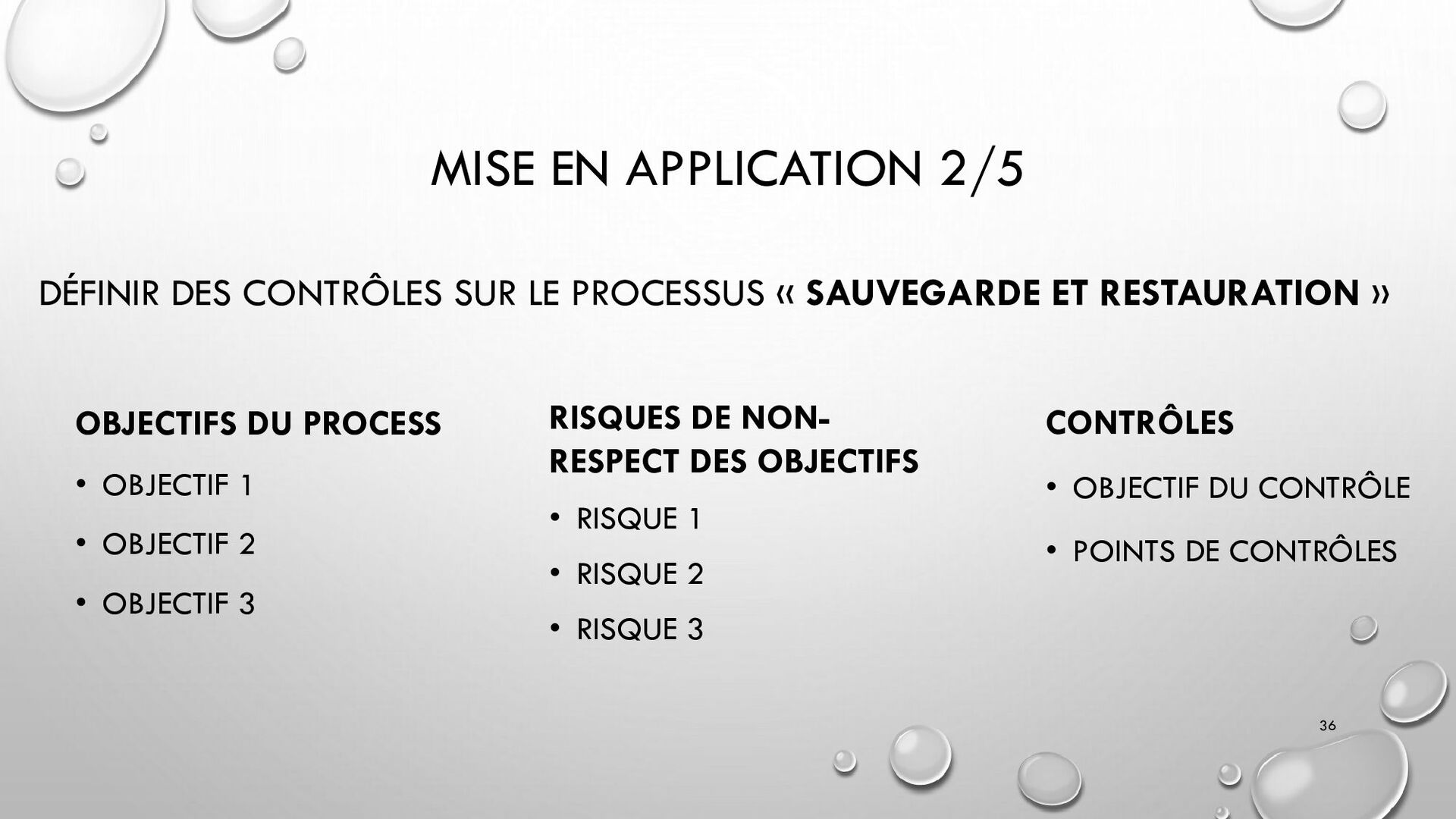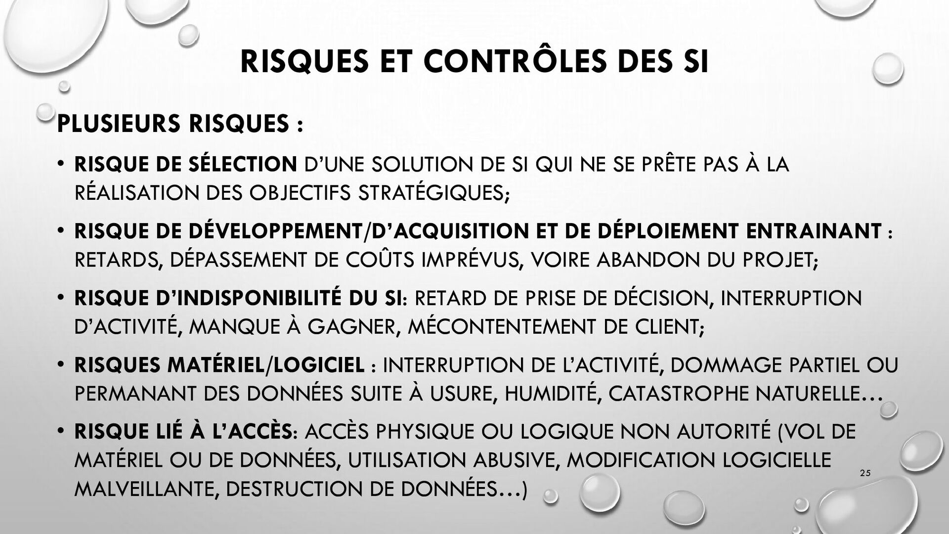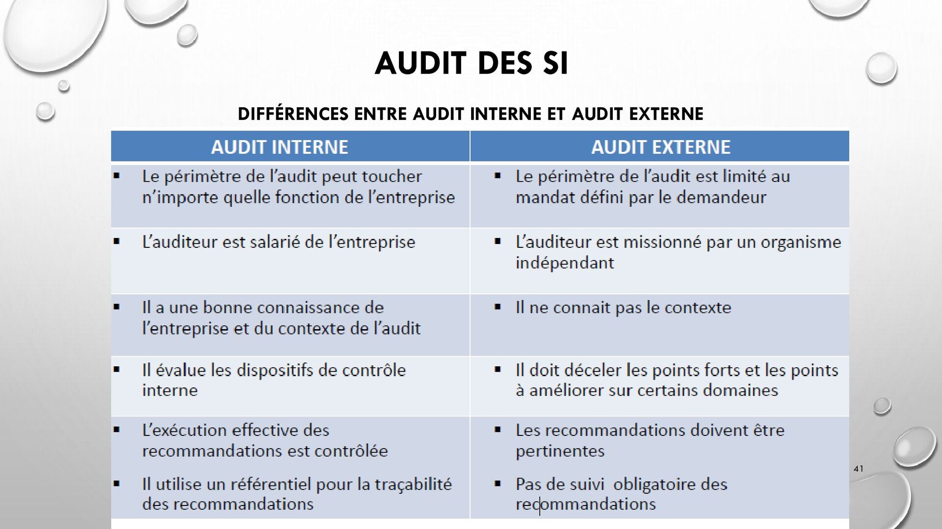 CONTRÔLES TECHNIQUES DES SI : • CONTRÔLE DES LOGICIELS SYSTÈMES, SYSTÈME D’EXPLOITATION, SYSTÈME DE GESTION DE BDD, PARE-FEUX, ANTIVIRUS => RESTREINDRE L’ACCÈS LOGIQUE AU SYSTÈMES ET APPLICATIONS, PILOTE L’UTILISATION DES SYSTÈMES, GÉNÈRE DES PISTES D’AUDIT. • EXEMPLE : PENTEST, DROIT D’ACCÈS CONFORME À LA POLITIQUE, SÉPARATION DES TÂCHES, IDS, IPS, CHIFFREMENT, PROCÉDURES DE GESTION DES CHANGEMENTS ET DES PATCHS 32
