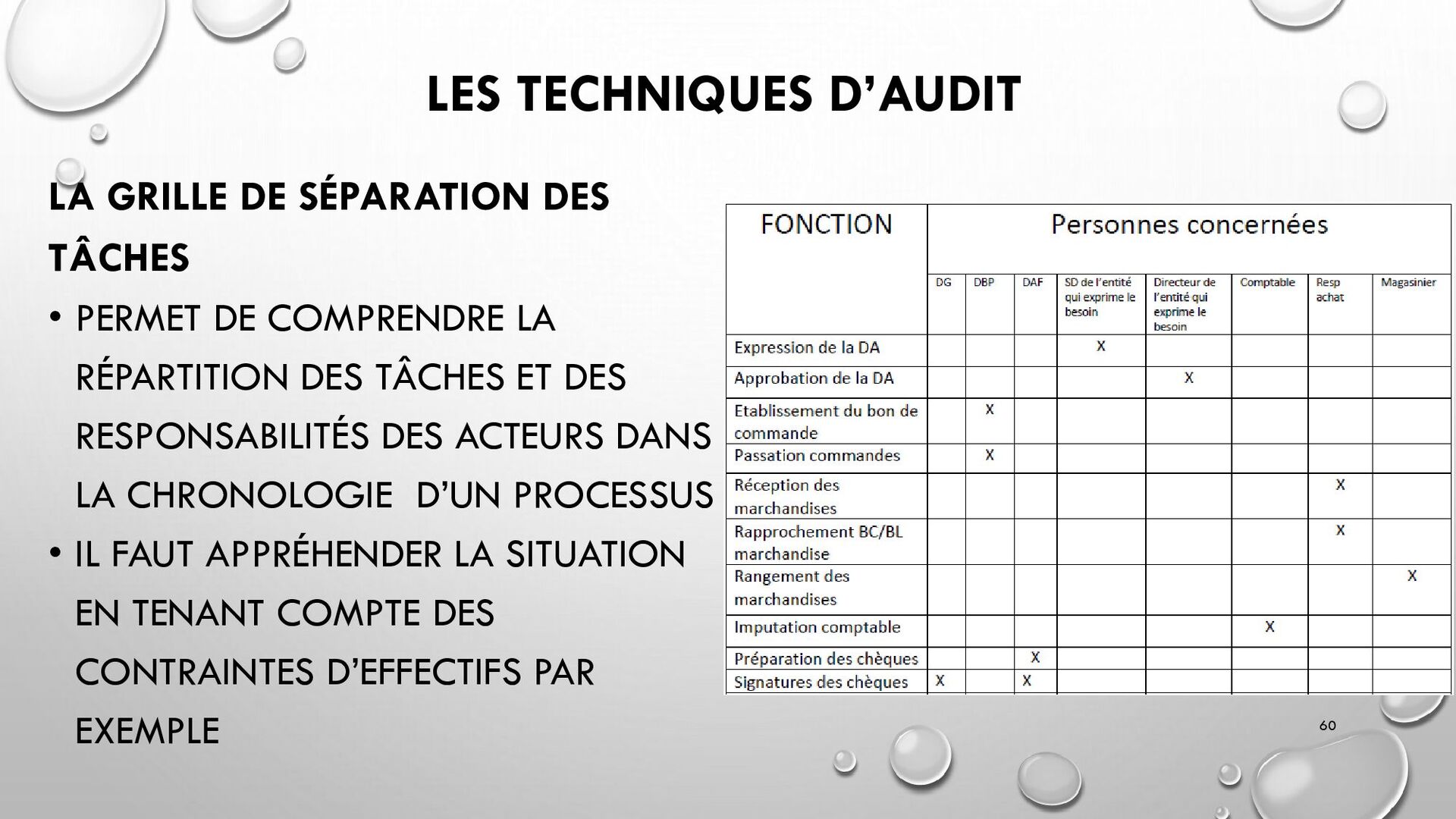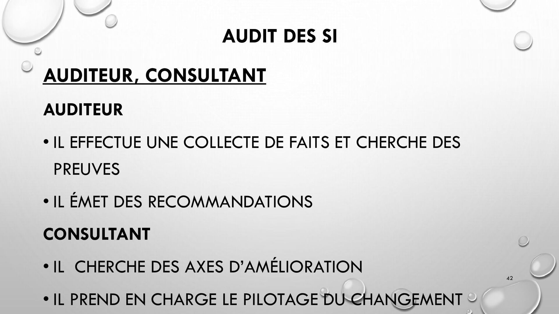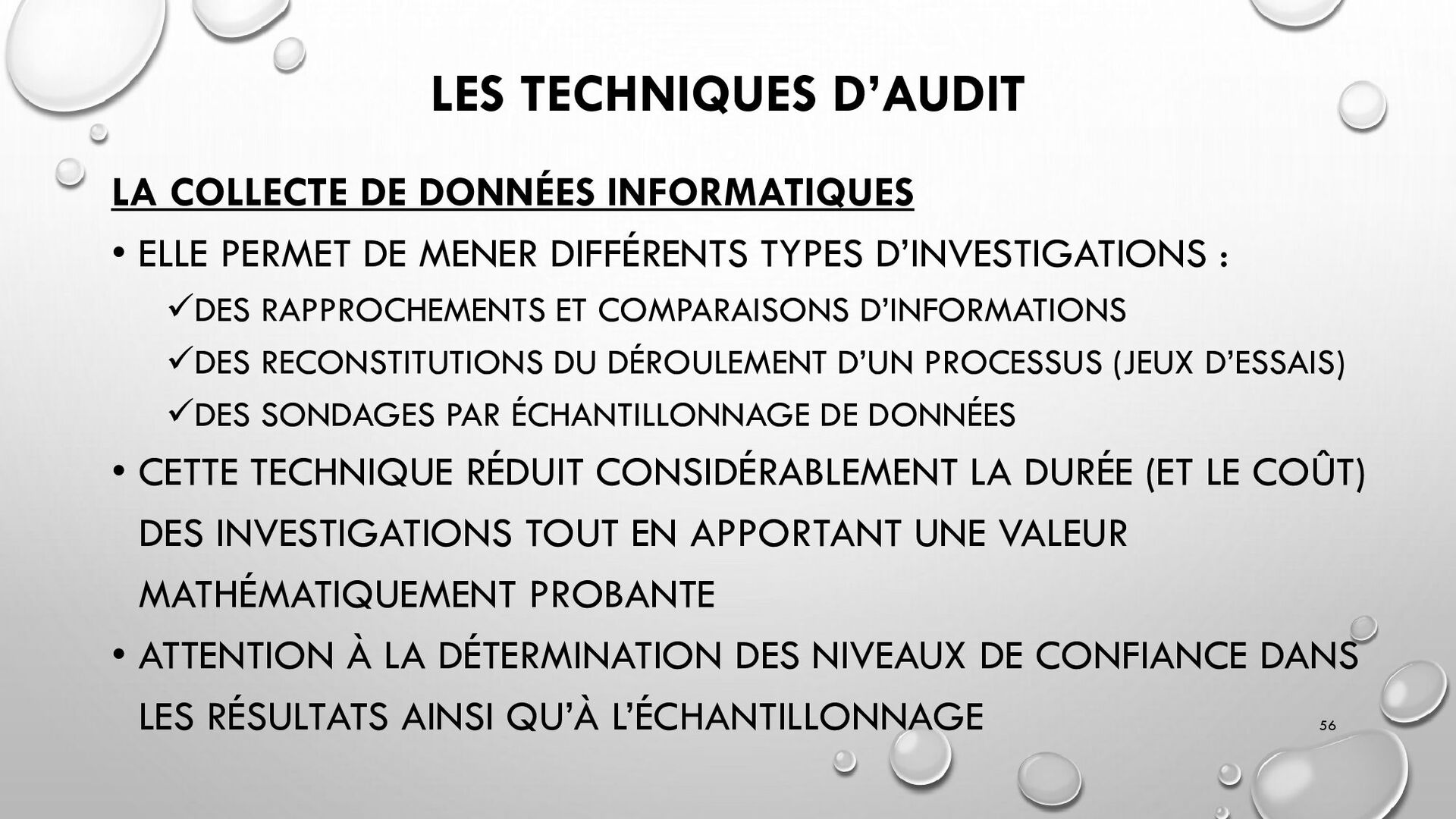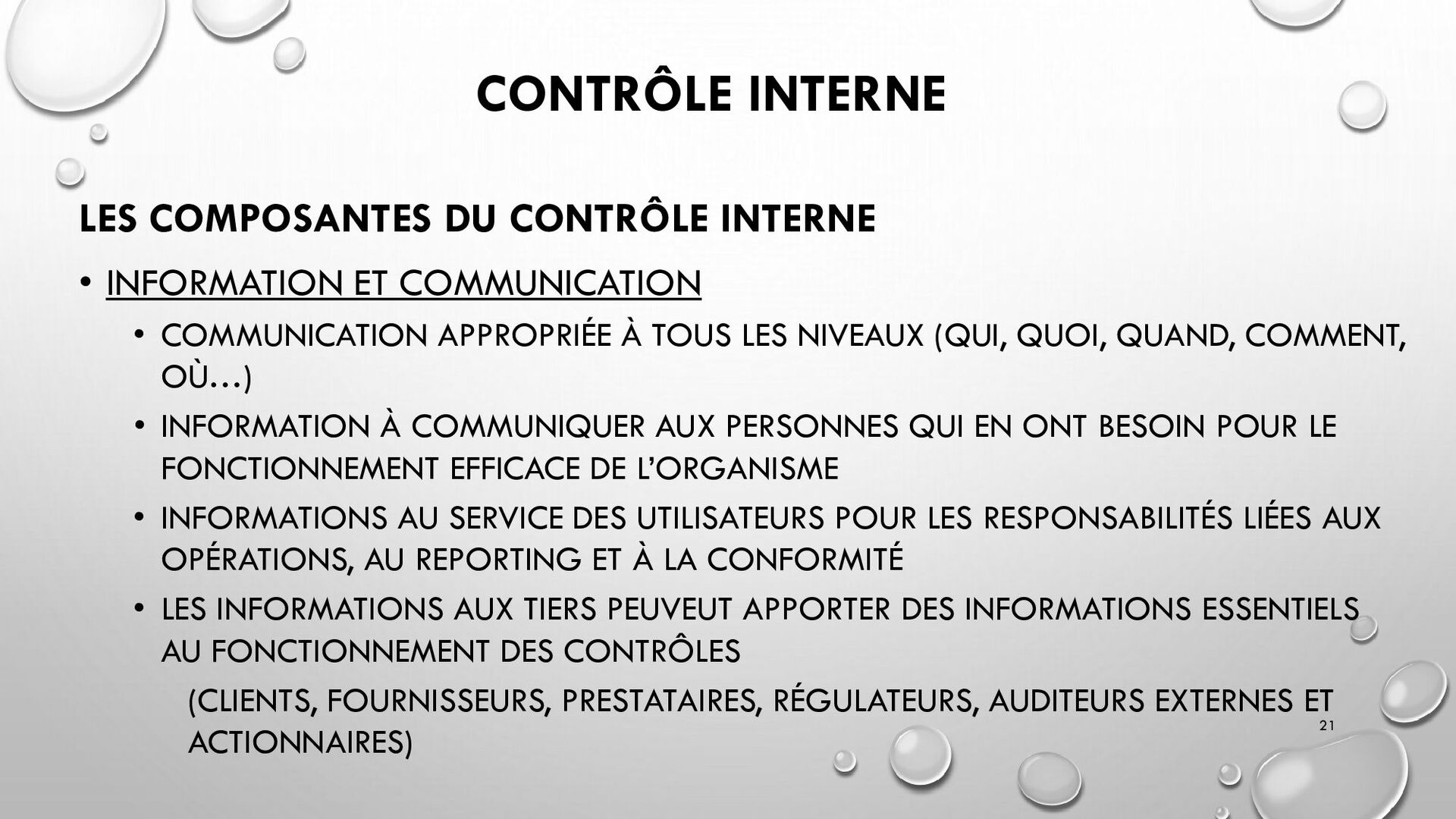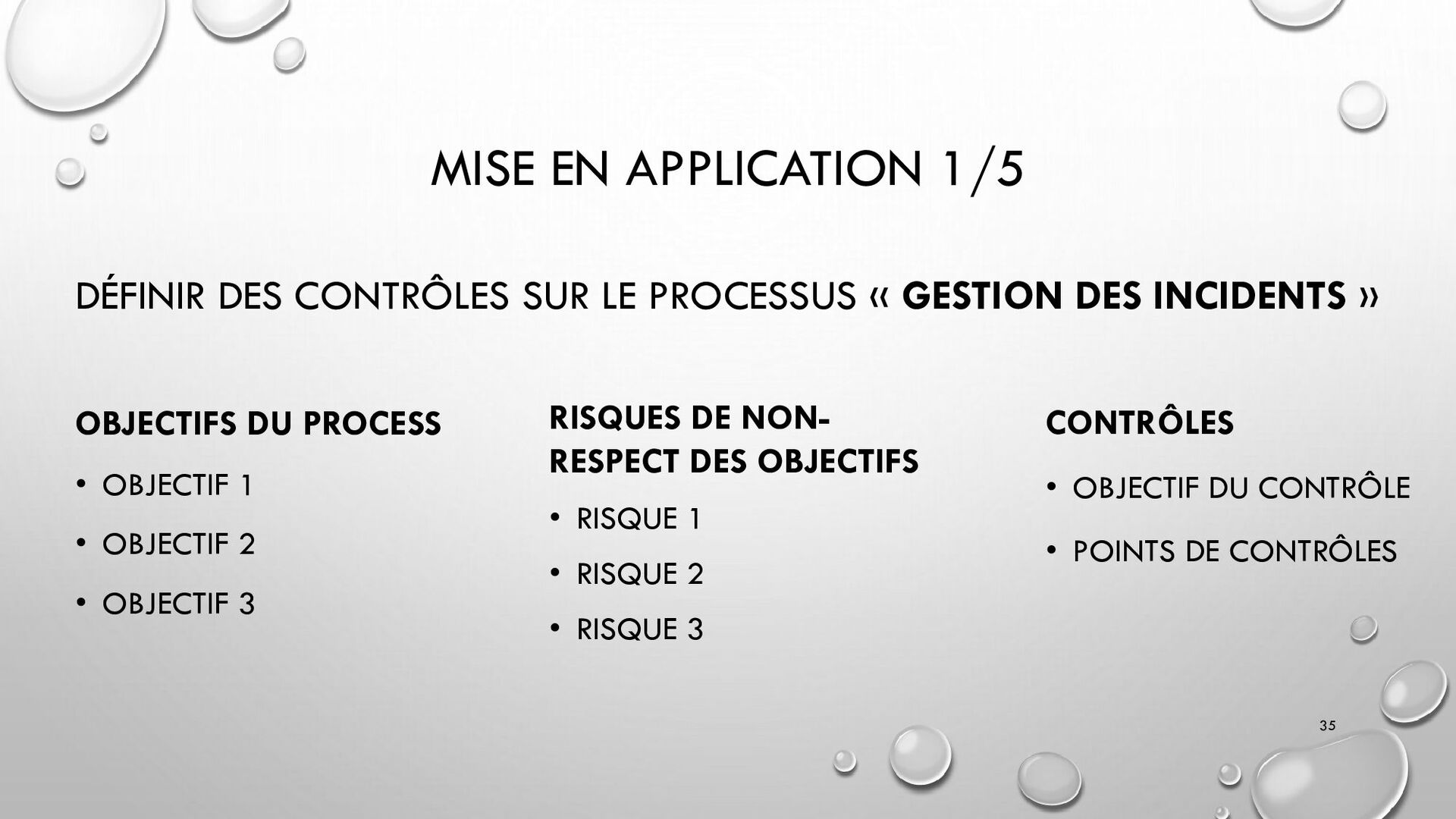 CONTRÔLES TECHNIQUES DES SI : • CONTRÔLE DES LOGICIELS SYSTÈMES, SYSTÈME D’EXPLOITATION, SYSTÈME DE GESTION DE BDD, PARE-FEUX, ANTIVIRUS => RESTREINDRE L’ACCÈS LOGIQUE AU SYSTÈMES ET APPLICATIONS, PILOTE L’UTILISATION DES SYSTÈMES, GÉNÈRE DES PISTES D’AUDIT. • EXEMPLE : PENTEST, DROIT D’ACCÈS CONFORME À LA POLITIQUE, SÉPARATION DES TÂCHES, IDS, IPS, CHIFFREMENT, PROCÉDURES DE GESTION DES CHANGEMENTS ET DES PATCHS 32