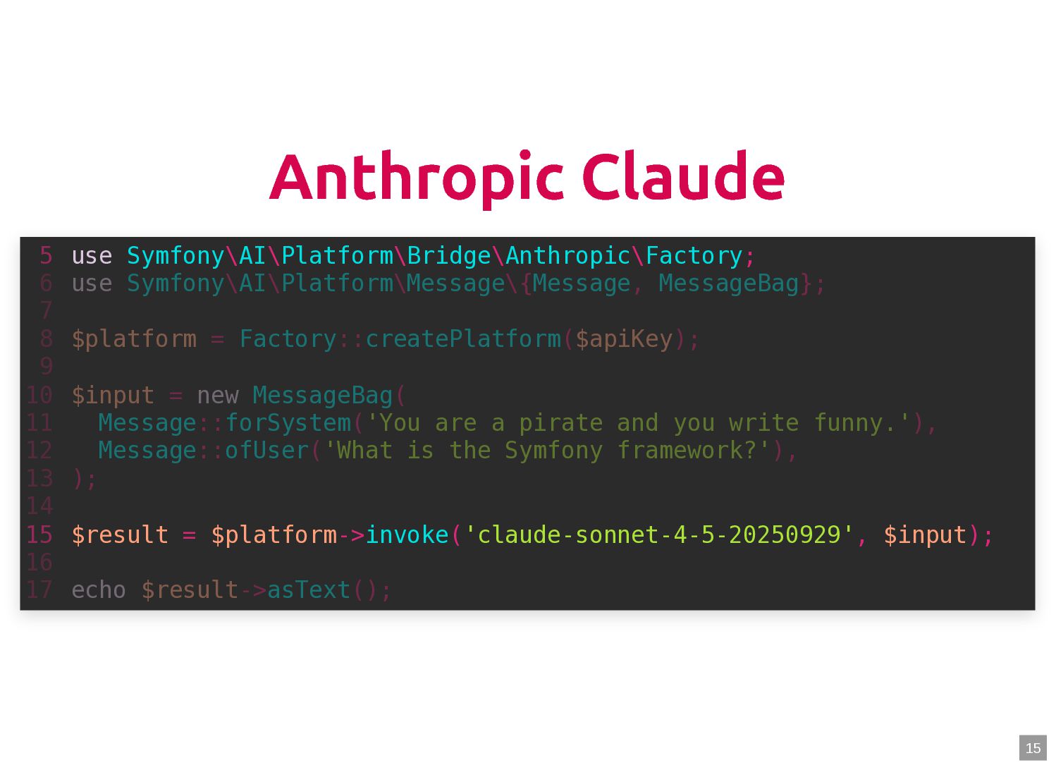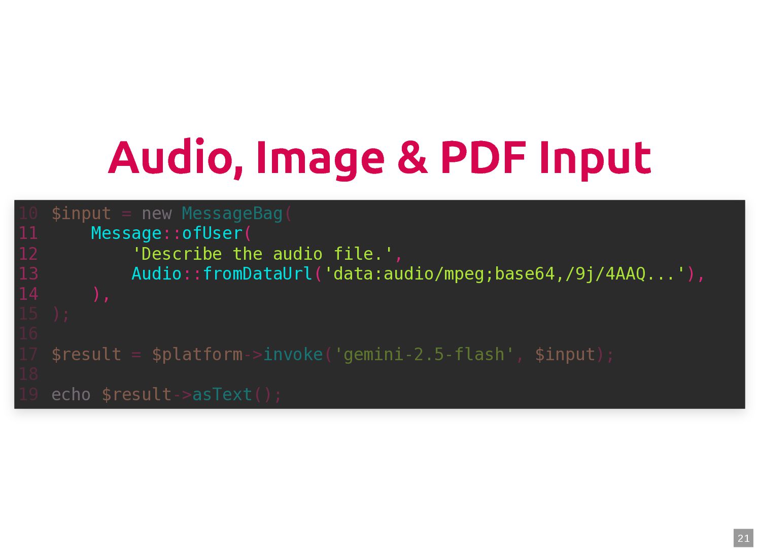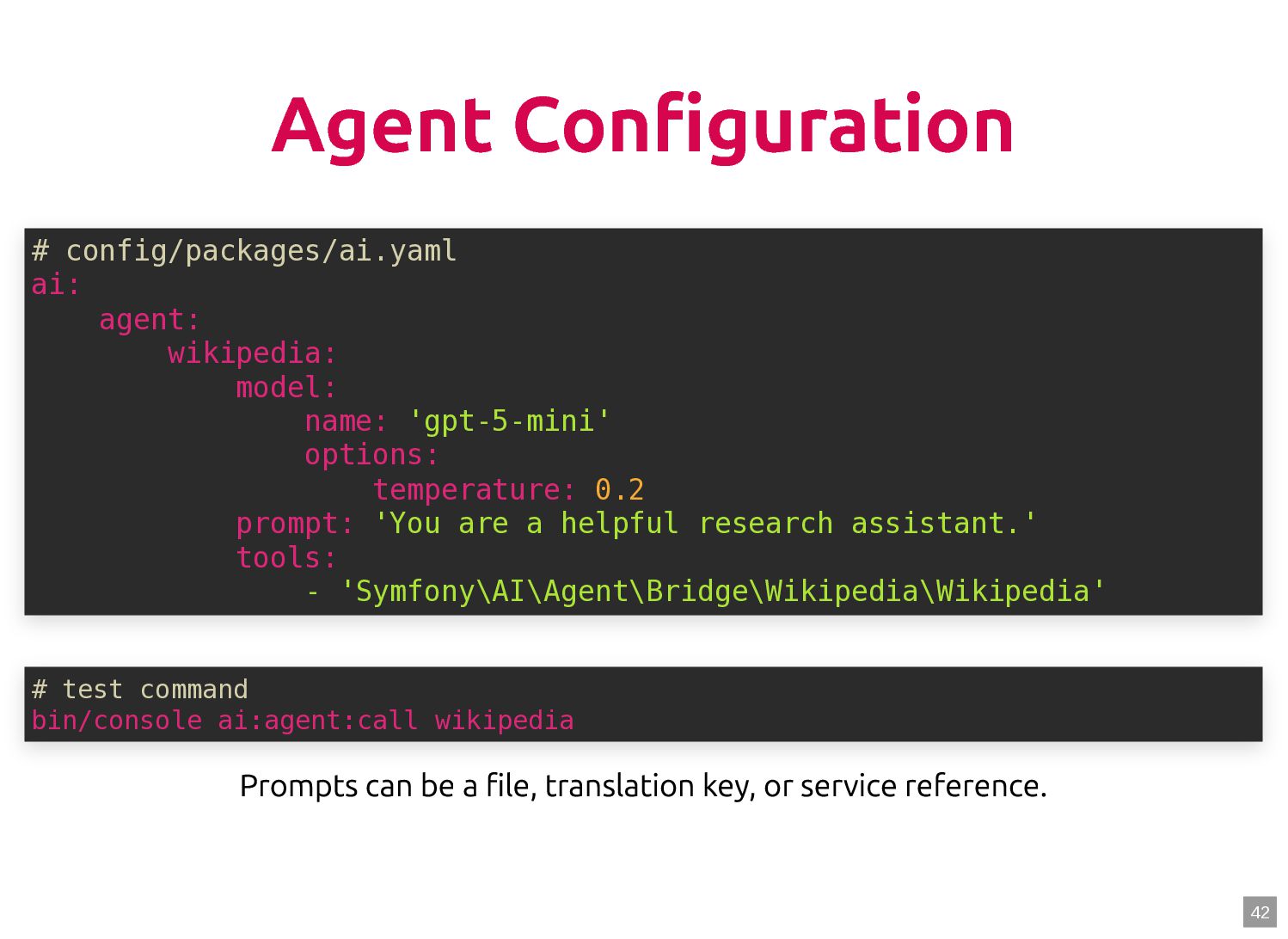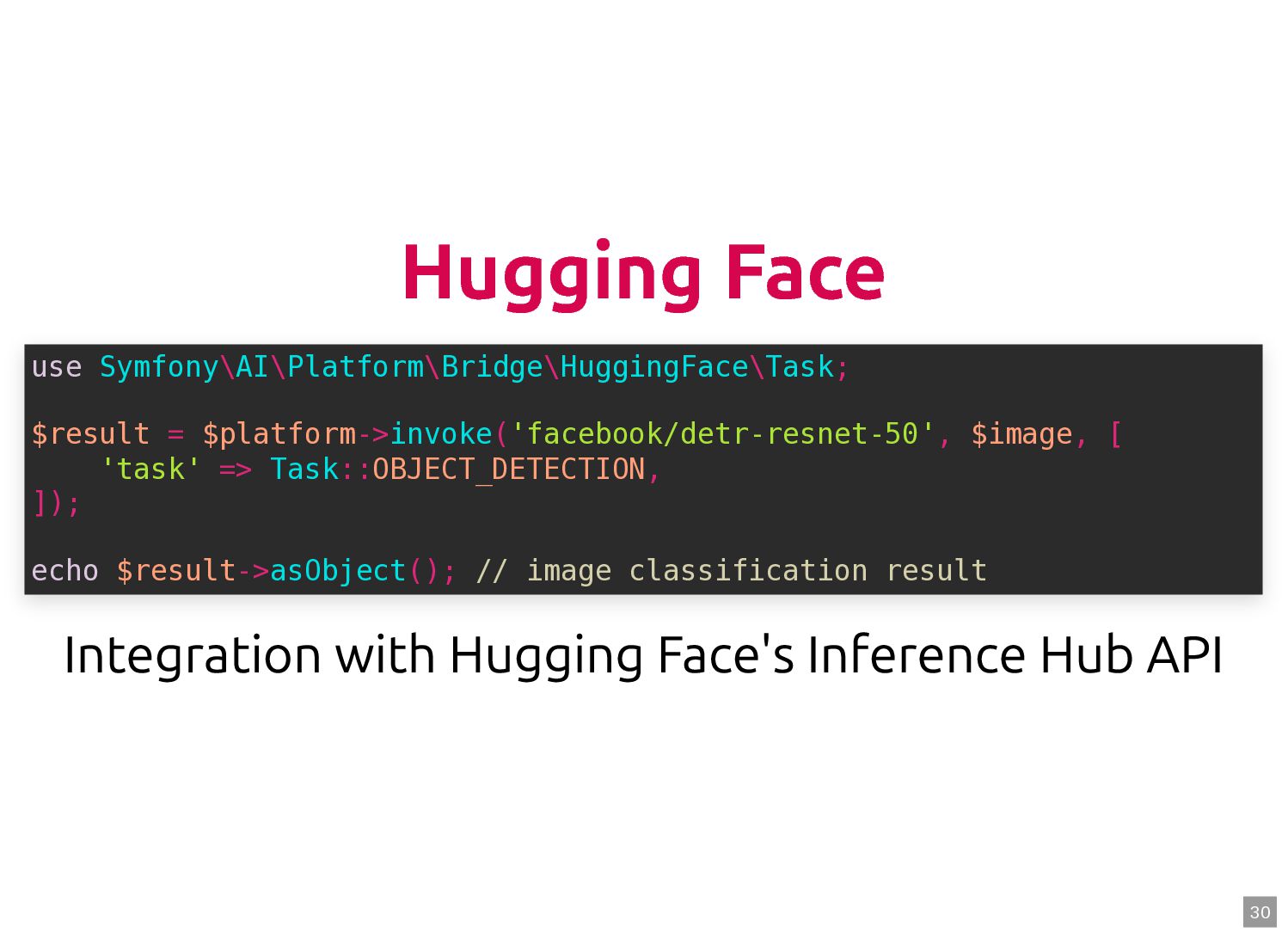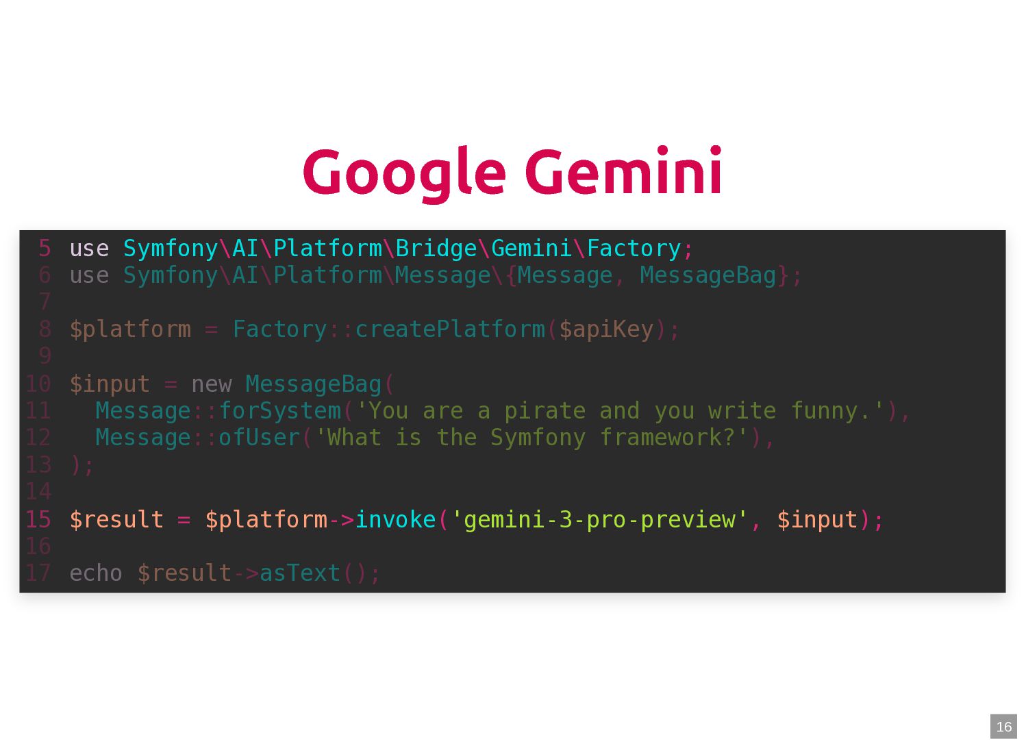 text in, documents out (wraps TextQuery) $documents = $retriever->retrieve('mafia movie'); // Low-level: pick the Query shape yourself $store->query(new TextQuery('mafia movie')); $store->query(new VectorQuery($vectorizer->vectorize('mafia movie'))); $store->query(new HybridQuery( vector: $vectorizer->vectorize('mafia movie'), text: 'mafia movie', semanticRatio: 0.7, // 70% semantic, 30% keyword )); 5 6 7 8 9 10 11 12 13 14 15 16 17 $retriever = new Retriever($store, $vectorizer); 5 6 // High-level: text in, documents out (wraps TextQuery) 7 $documents = $retriever->retrieve('mafia movie'); 8 9 // Low-level: pick the Query shape yourself 10 $store->query(new TextQuery('mafia movie')); 11 $store->query(new VectorQuery($vectorizer->vectorize('mafia movie'))); 12 $store->query(new HybridQuery( 13 vector: $vectorizer->vectorize('mafia movie'), 14 text: 'mafia movie', 15 semanticRatio: 0.7, // 70% semantic, 30% keyword 16 )); 17 $documents = $retriever->retrieve('mafia movie'); $retriever = new Retriever($store, $vectorizer); 5 6 // High-level: text in, documents out (wraps TextQuery) 7 8 9 // Low-level: pick the Query shape yourself 10 $store->query(new TextQuery('mafia movie')); 11 $store->query(new VectorQuery($vectorizer->vectorize('mafia movie'))); 12 $store->query(new HybridQuery( 13 vector: $vectorizer->vectorize('mafia movie'), 14 text: 'mafia movie', 15 semanticRatio: 0.7, // 70% semantic, 30% keyword 16 )); 17 $store->query(new TextQuery('mafia movie')); $retriever = new Retriever($store, $vectorizer); 5 6 // High-level: text in, documents out (wraps TextQuery) 7 $documents = $retriever->retrieve('mafia movie'); 8 9 // Low-level: pick the Query shape yourself 10 11 $store->query(new VectorQuery($vectorizer->vectorize('mafia movie'))); 12 $store->query(new HybridQuery( 13 vector: $vectorizer->vectorize('mafia movie'), 14 text: 'mafia movie', 15 semanticRatio: 0.7, // 70% semantic, 30% keyword 16 )); 17 $store->query(new VectorQuery($vectorizer->vectorize('mafia movie'))); $retriever = new Retriever($store, $vectorizer); 5 6 // High-level: text in, documents out (wraps TextQuery) 7 $documents = $retriever->retrieve('mafia movie'); 8 9 // Low-level: pick the Query shape yourself 10 $store->query(new TextQuery('mafia movie')); 11 12 $store->query(new HybridQuery( 13 vector: $vectorizer->vectorize('mafia movie'), 14 text: 'mafia movie', 15 semanticRatio: 0.7, // 70% semantic, 30% keyword 16 )); 17 $store->query(new HybridQuery( vector: $vectorizer->vectorize('mafia movie'), text: 'mafia movie', semanticRatio: 0.7, // 70% semantic, 30% keyword )); $retriever = new Retriever($store, $vectorizer); 5 6 // High-level: text in, documents out (wraps TextQuery) 7 $documents = $retriever->retrieve('mafia movie'); 8 9 // Low-level: pick the Query shape yourself 10 $store->query(new TextQuery('mafia movie')); 11 $store->query(new VectorQuery($vectorizer->vectorize('mafia movie'))); 12 13 14 15 16 17 60