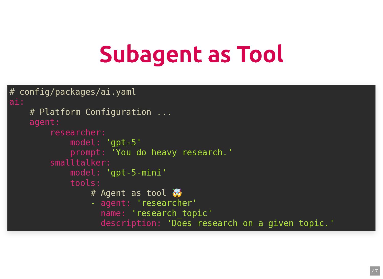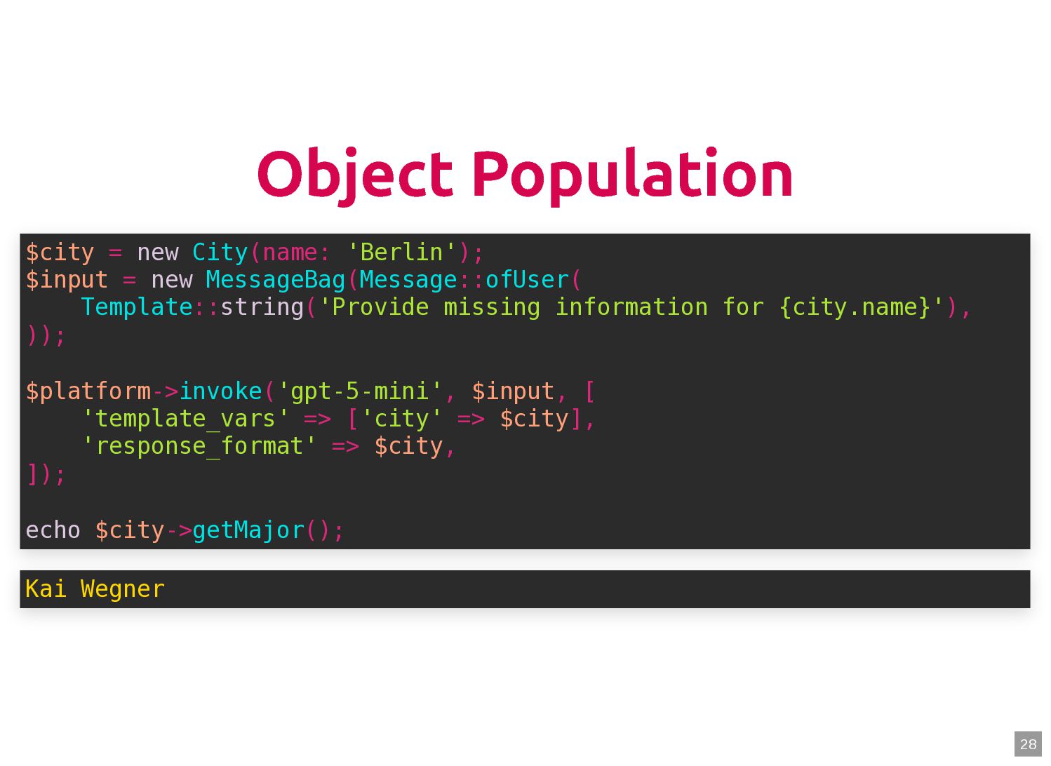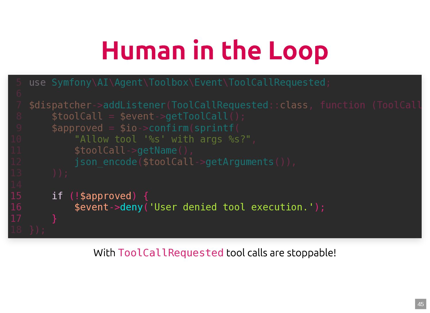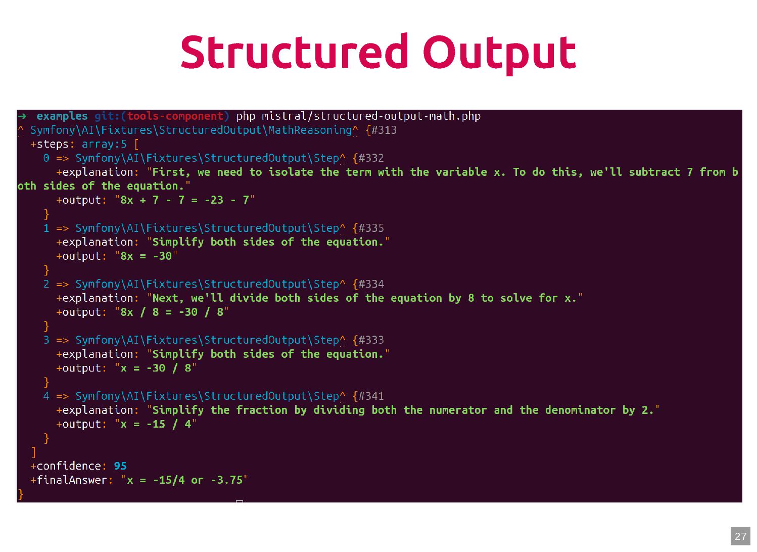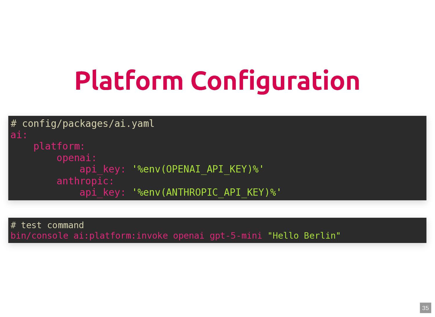 text in, documents out (wraps TextQuery) $documents = $retriever->retrieve('mafia movie'); // Low-level: pick the Query shape yourself $store->query(new TextQuery('mafia movie')); $store->query(new VectorQuery($vectorizer->vectorize('mafia movie'))); $store->query(new HybridQuery( vector: $vectorizer->vectorize('mafia movie'), text: 'mafia movie', semanticRatio: 0.7, // 70% semantic, 30% keyword )); 5 6 7 8 9 10 11 12 13 14 15 16 17 $retriever = new Retriever($store, $vectorizer); 5 6 // High-level: text in, documents out (wraps TextQuery) 7 $documents = $retriever->retrieve('mafia movie'); 8 9 // Low-level: pick the Query shape yourself 10 $store->query(new TextQuery('mafia movie')); 11 $store->query(new VectorQuery($vectorizer->vectorize('mafia movie'))); 12 $store->query(new HybridQuery( 13 vector: $vectorizer->vectorize('mafia movie'), 14 text: 'mafia movie', 15 semanticRatio: 0.7, // 70% semantic, 30% keyword 16 )); 17 $documents = $retriever->retrieve('mafia movie'); $retriever = new Retriever($store, $vectorizer); 5 6 // High-level: text in, documents out (wraps TextQuery) 7 8 9 // Low-level: pick the Query shape yourself 10 $store->query(new TextQuery('mafia movie')); 11 $store->query(new VectorQuery($vectorizer->vectorize('mafia movie'))); 12 $store->query(new HybridQuery( 13 vector: $vectorizer->vectorize('mafia movie'), 14 text: 'mafia movie', 15 semanticRatio: 0.7, // 70% semantic, 30% keyword 16 )); 17 $store->query(new TextQuery('mafia movie')); $retriever = new Retriever($store, $vectorizer); 5 6 // High-level: text in, documents out (wraps TextQuery) 7 $documents = $retriever->retrieve('mafia movie'); 8 9 // Low-level: pick the Query shape yourself 10 11 $store->query(new VectorQuery($vectorizer->vectorize('mafia movie'))); 12 $store->query(new HybridQuery( 13 vector: $vectorizer->vectorize('mafia movie'), 14 text: 'mafia movie', 15 semanticRatio: 0.7, // 70% semantic, 30% keyword 16 )); 17 $store->query(new VectorQuery($vectorizer->vectorize('mafia movie'))); $retriever = new Retriever($store, $vectorizer); 5 6 // High-level: text in, documents out (wraps TextQuery) 7 $documents = $retriever->retrieve('mafia movie'); 8 9 // Low-level: pick the Query shape yourself 10 $store->query(new TextQuery('mafia movie')); 11 12 $store->query(new HybridQuery( 13 vector: $vectorizer->vectorize('mafia movie'), 14 text: 'mafia movie', 15 semanticRatio: 0.7, // 70% semantic, 30% keyword 16 )); 17 $store->query(new HybridQuery( vector: $vectorizer->vectorize('mafia movie'), text: 'mafia movie', semanticRatio: 0.7, // 70% semantic, 30% keyword )); $retriever = new Retriever($store, $vectorizer); 5 6 // High-level: text in, documents out (wraps TextQuery) 7 $documents = $retriever->retrieve('mafia movie'); 8 9 // Low-level: pick the Query shape yourself 10 $store->query(new TextQuery('mafia movie')); 11 $store->query(new VectorQuery($vectorizer->vectorize('mafia movie'))); 12 13 14 15 16 17 60