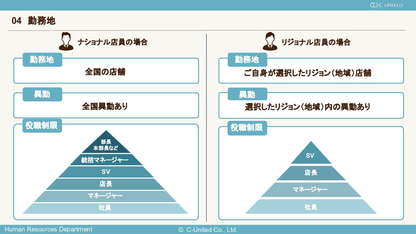 5. © C-United Co., Ltd. Human Resources Department 04 勤務地 ナショナル店員の場合 リジョナル店員の場合