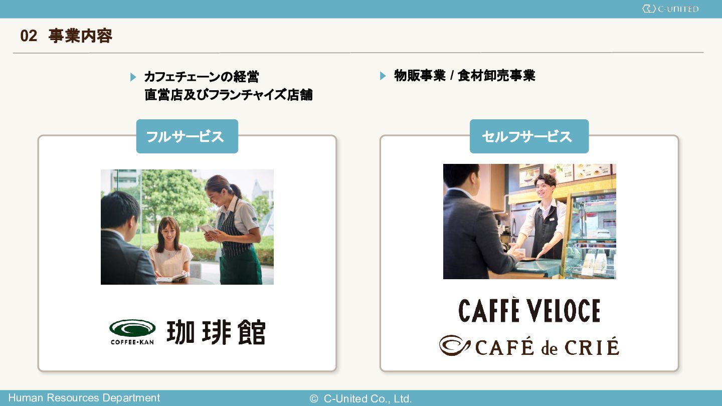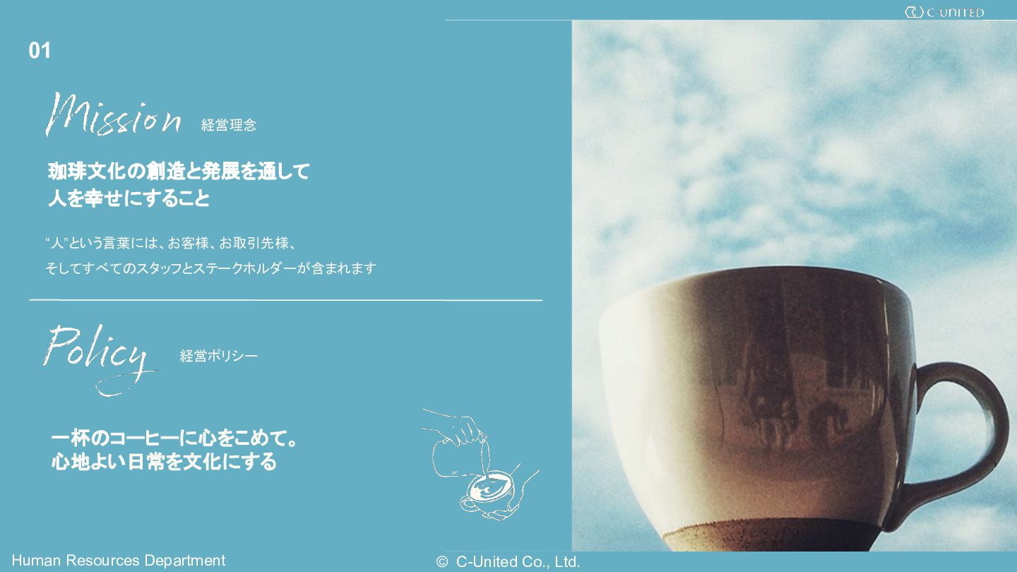2. © C-United Co., Ltd. Human Resources Department 経営理念 珈琲文化の創造と発展を通して 人を幸せにすること
