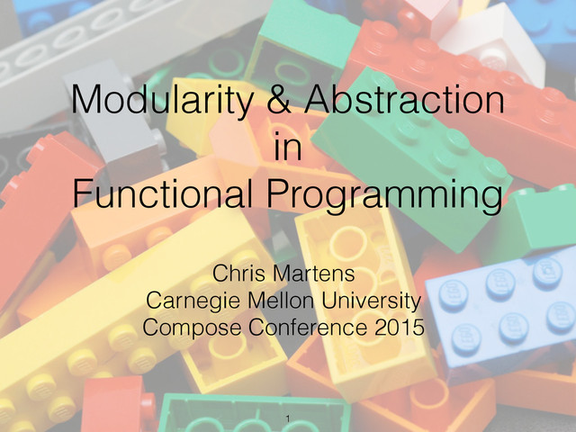 - Abstract Types Have Existential Type! Mitchell - Representation Independence and Data Abstraction! Derek Dreyer’s thesis & papers! Further Reading Code for this talk: https://github.com/chrisamaphone/compose2015 @chrisamaphone 70