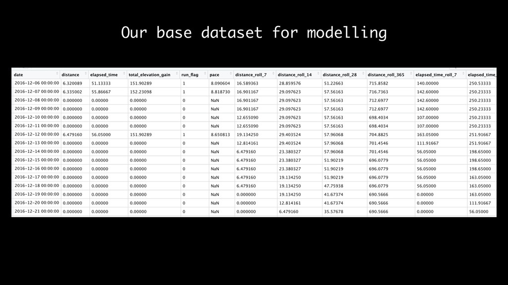 Our base dataset for modelling