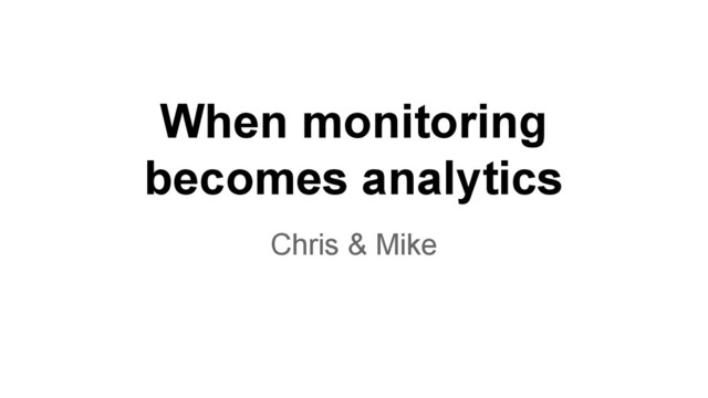 As systems get larger, monitoring your servers becomes a thankless (and often useless) task. What becomes more valuable is thinking about your monitoring task as an analytics challenge. What services do I care about? How do I abstract out of servers into thinking about the user experience? How can I relate infrastructure performance to business questions? These questions are the next frontier for devops analytics. We’ll cover these kinds of questions and more in this session, including: