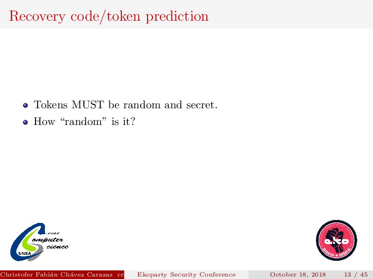 “random” is it? Christofer Fabi´ an Ch´ avez Carazas [email protected] (San Agust´ ın National University) Ekoparty Security Conference October 18, 2018 13 / 45