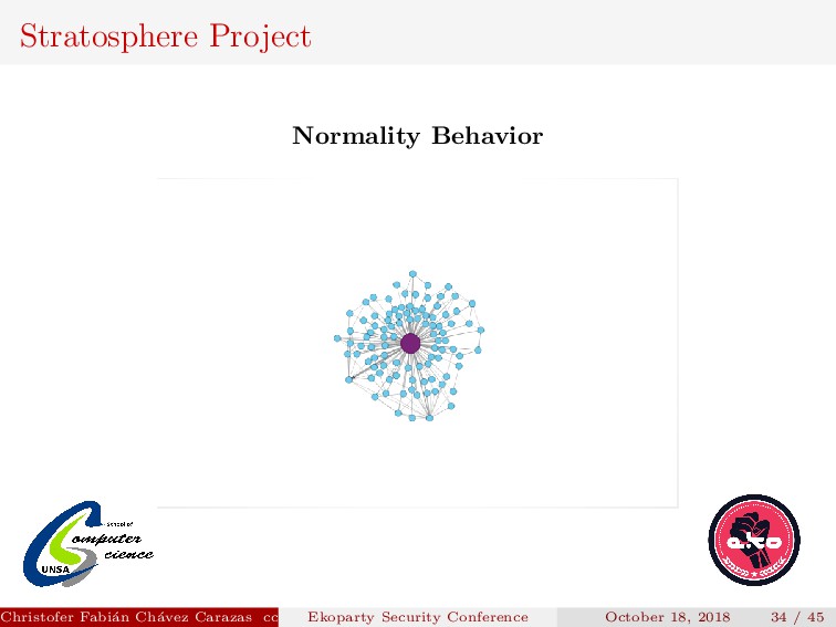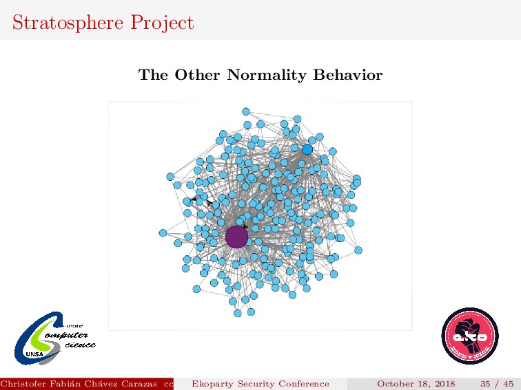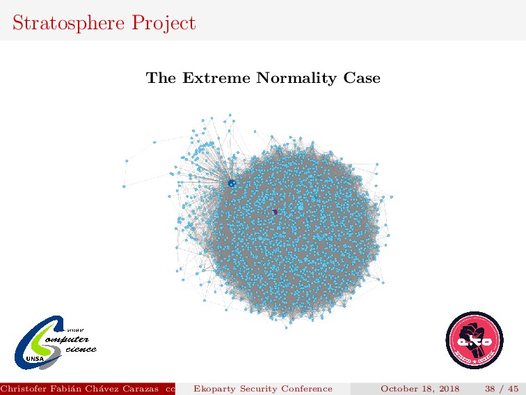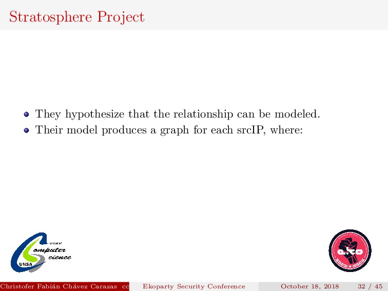 Their model produces a graph for each srcIP, where: Each node is a tuple DstIP, DstPort. Christofer Fabi´ an Ch´ avez Carazas [email protected] (San Agust´ ın National University) Ekoparty Security Conference October 18, 2018 32 / 45