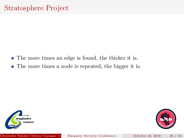 thicker it is. The more times a node is repeated, the bigger it is. Christofer Fabi´ an Ch´ avez Carazas [email protected] (San Agust´ ın National University) Ekoparty Security Conference October 18, 2018 33 / 45