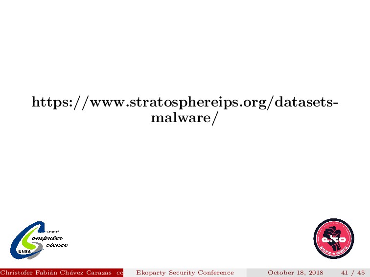 Scientist Christofer Fabi´ an Ch´ avez Carazas [email protected] San Agust´ ın National University October 18, 2018 Slides: https://goo.gl/7dLWN3 Christofer Fabi´ an Ch´ avez Carazas [email protected] (San Agust´ ın National University) Ekoparty Security Conference October 18, 2018 45 / 45