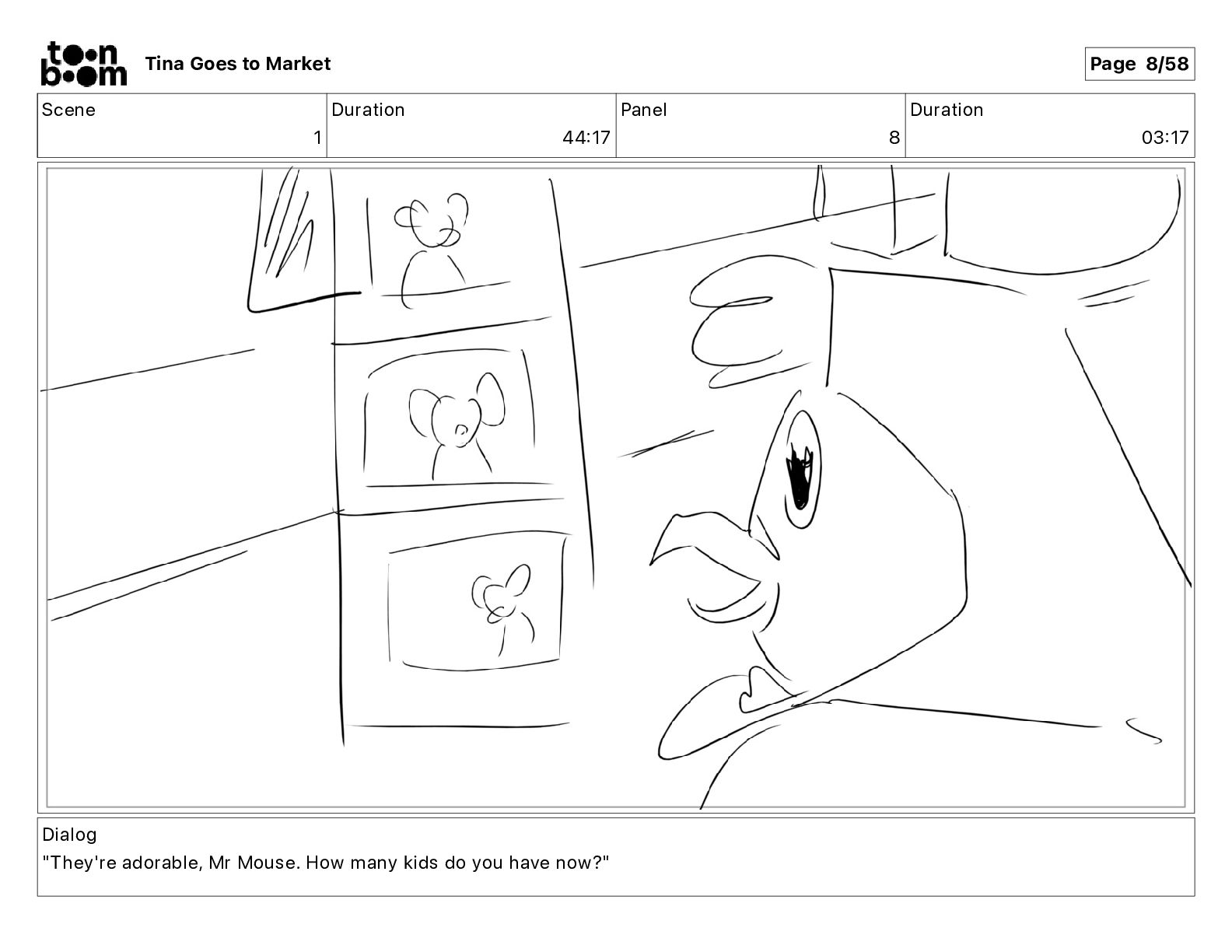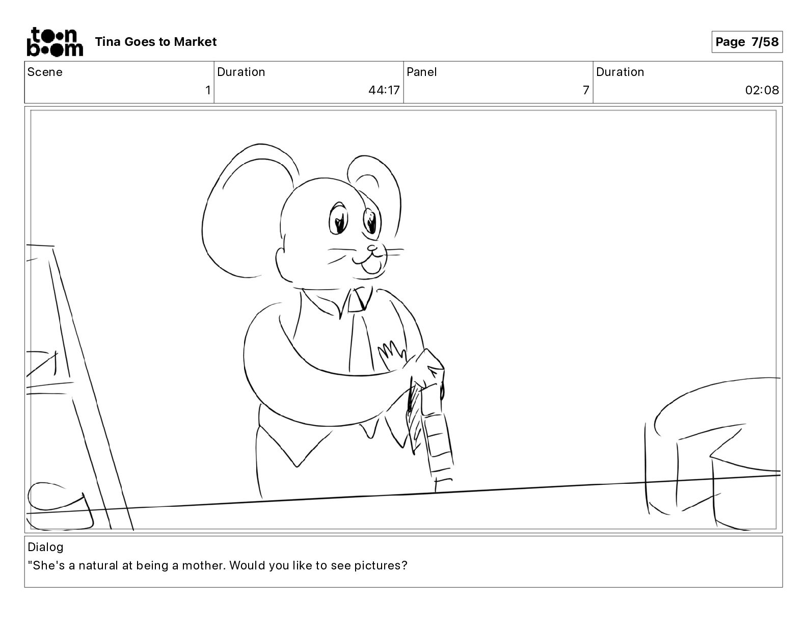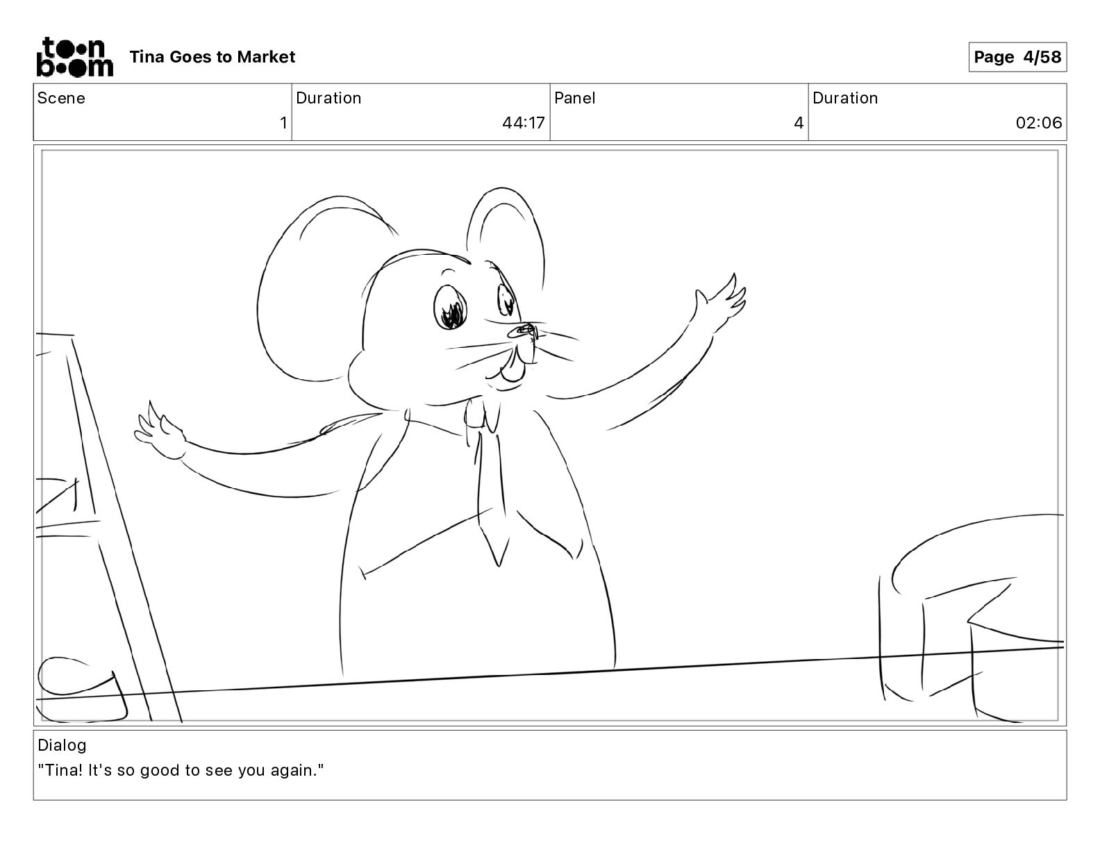Dialog "Well thanks for the cheese. I canʼt wait to dig in and enjoy the delicious cheeses. You always make the most amazing cheeses, Mr. Mouse. " Tina Goes to Market Page 10/58