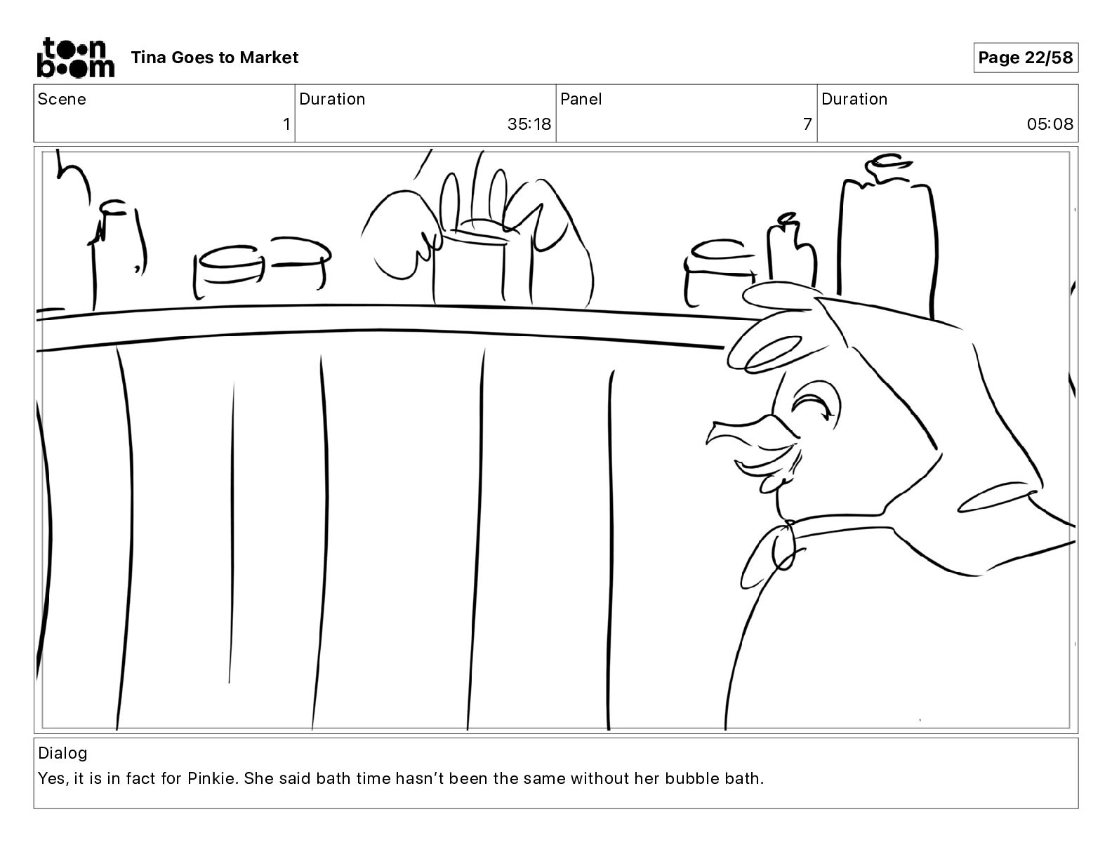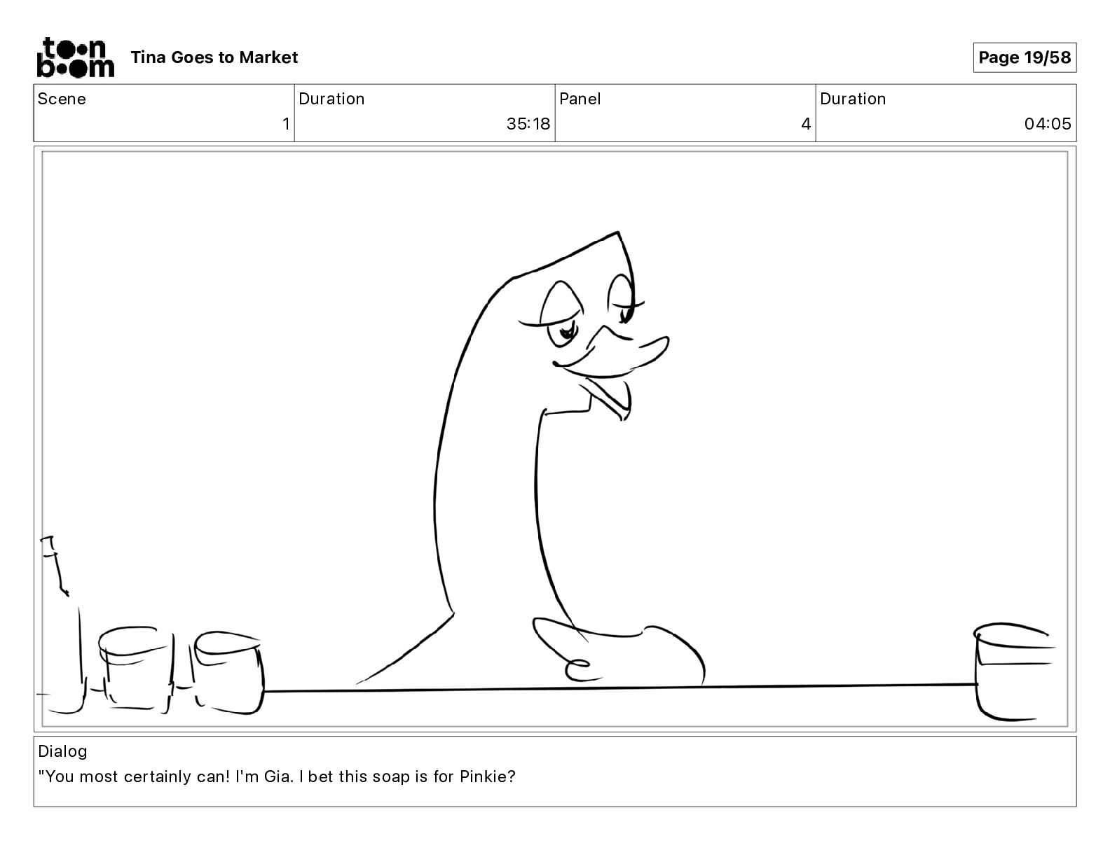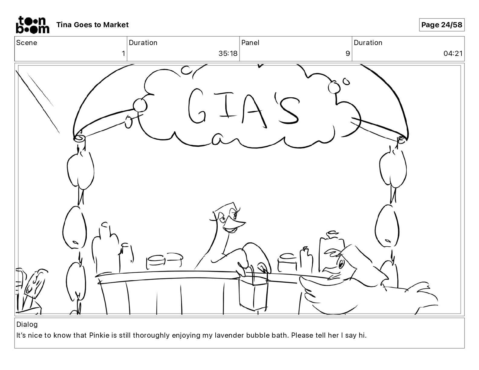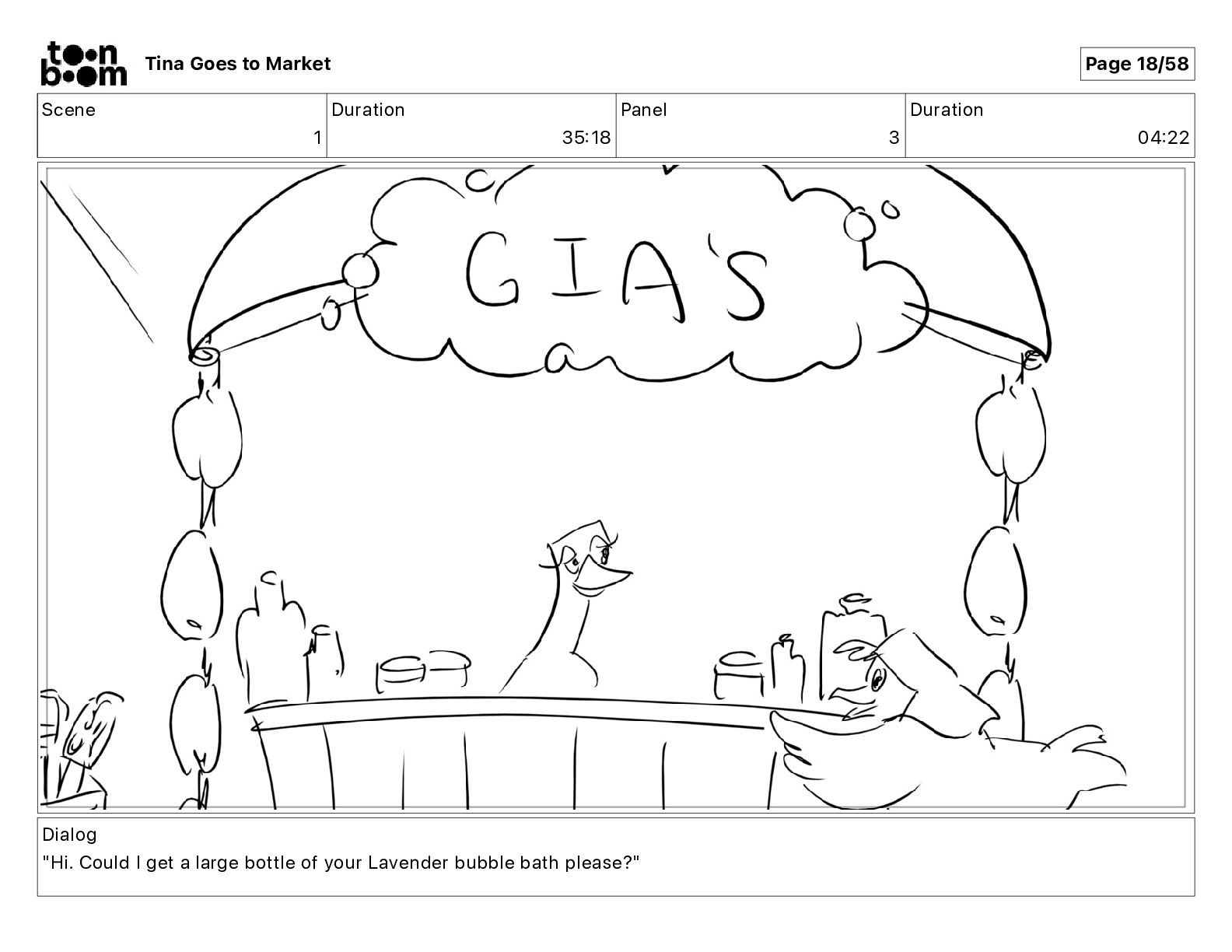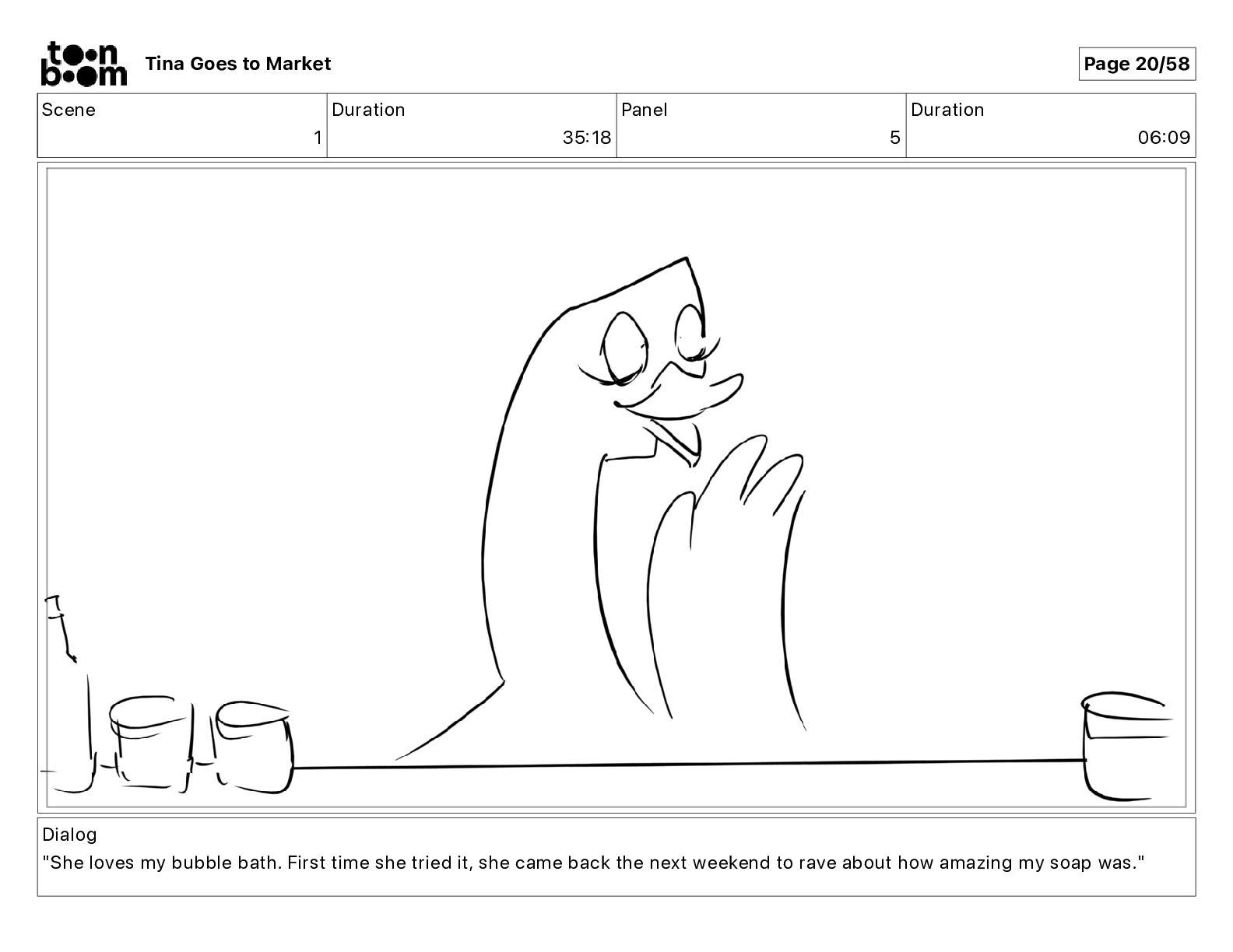 Dialog "She loves my bubble bath. First time she tried it, she came back the next weekend to rave about how amazing my soap was." Tina Goes to Market Page 20/58