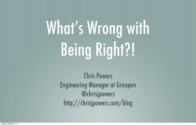 Chris Powers offers some answers to these questions while exploring the notion and implications of "being right" in software development teams.