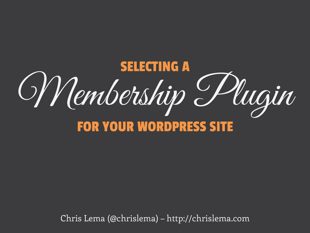 SELECTING A Membership Plugin FOR YOUR WORDPRESS SITE Chris Lema