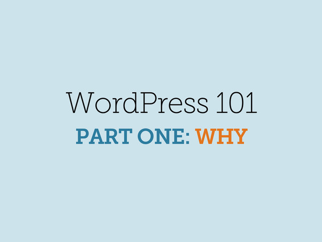 WordPress 101 PART ONE: WHY