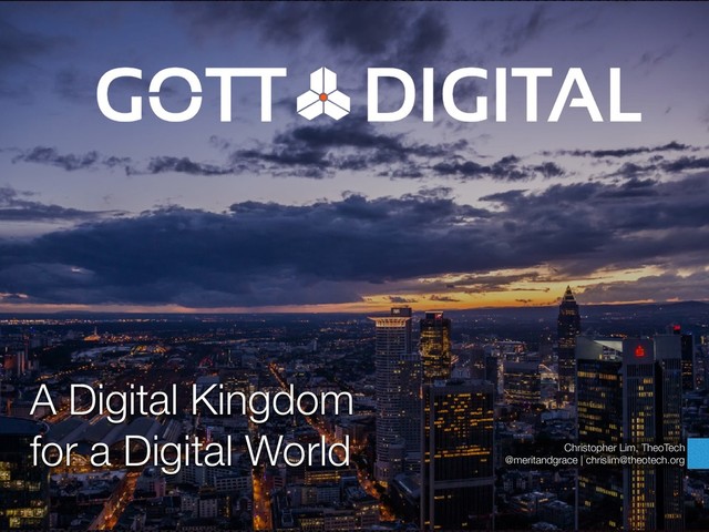 Digital technology has transformed our lives, connecting us with the world and one another on unprecedented levels. As followers of Jesus we are responsible for making the most of this opportunity for the sake of the Gospel. This talk will cast a vision for how developers, designers, entrepreneurs, organizations and everyday Christians can collectively maximize their Kingdom impact in a digital world.