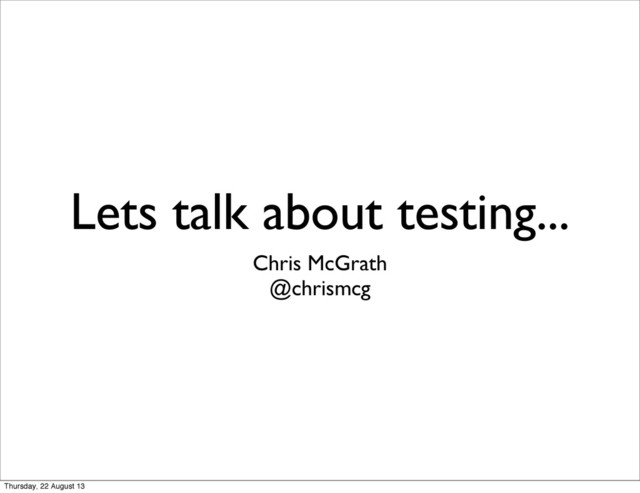 code • We like to have fun with our work • Code that’s easy to change is the most fun to work on • Tests should make our code easier to change Thursday, 22 August 13