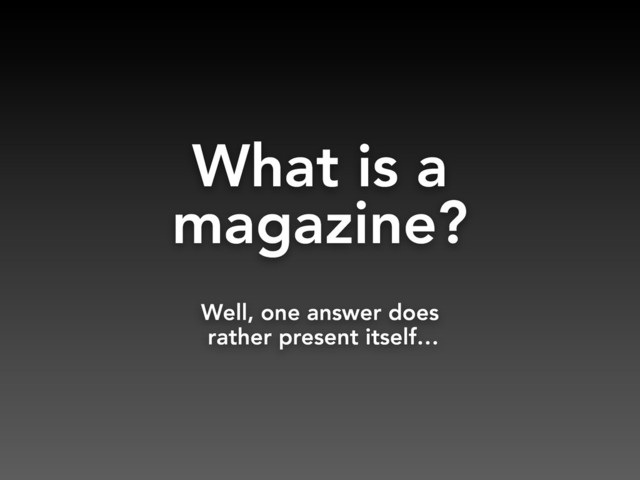 A series of discussion points about what a magazine is – or can be, should be, was, may be and so on – from a presentation given at The Future of Digital Magazines at the London College of Communication.