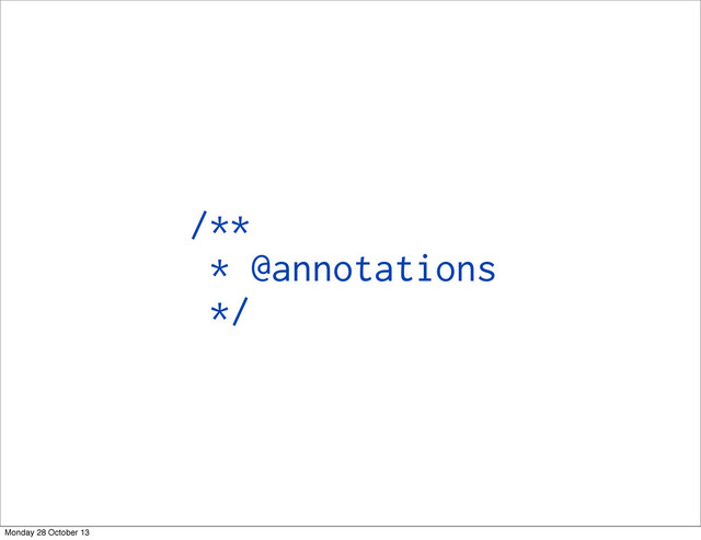 /** * @annotations */ Monday 28 October 13