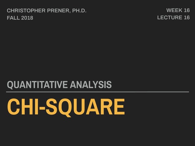 Lecture slides for Lecture 16 of the Saint Louis University Course Quantitative Analysis: Applied Inferential Statistics. These slides cover chi-squared.