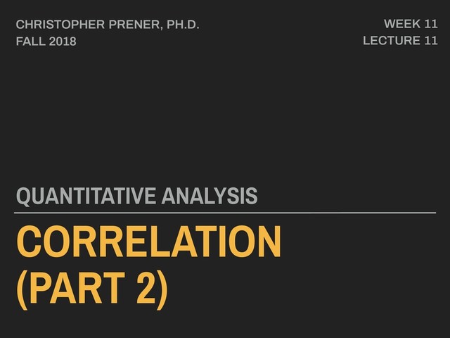 Lecture slides for Week 10 of the Saint Louis University Course Quantitative Analysis: Applied Inferential Statistics. These slides cover the topics related to correlation analyses.