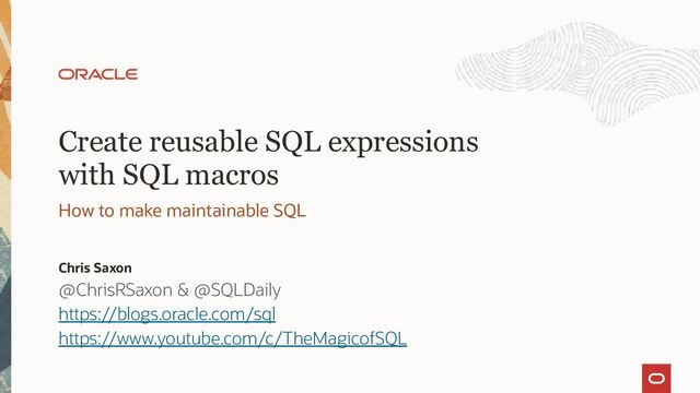 A common criticism of SQL is it lacks composability - the ability to define small units you can combine into larger functions. Oracle Database addresses this with the introduction of SQL macros. These return SQL expressions, enabling you to define reusable components.