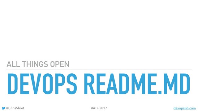 cases and helpful examples ▸ Years of experience poured into one book ▸ The next step of a DevOps journey ▸ Pros: Detail oriented, can give to technical staff ▸ Cons: Not a quick read ▸ Quip: You're DevOps'ing if you quote this book. @ChrisShort devopsish.com #ATO2017