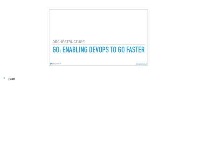 at ▸ Created by Robert Griesemer, Rob Pike, Ken Thompson ▸ Later adding Ian Lance Taylor and Russ Cox ▸ These cats have done some things: ▸ Sawzall (Hadoop), first window system for Unix in 1981, Google's V8 Engine, Plan 9 from Bell Labs, UTF-8, B programming language (C predecessor), regular expressions, GCC, the gold linker, and more @ChrisShort devopsish.com ‣ Created at Google ‣ A bunch of really smart people made Go ‣ Robert Griesemer ‣ Rob Pike ‣ Ken Thompson ‣ Ian Lance Taylor ‣ Russ Cox ‣ Some seriously brilliant minds