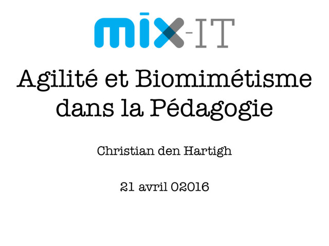Pédagogie Agile à Mixit16 (Keynote 20 minutes)