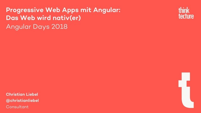 Progressive Web Apps (PWA) sind ein heißes und topaktuelles Thema in der Webentwicklung. Dank einer ganzen Reihe von Technologien und Vorgehensweisen aus dem PWA-Umfeld lassen sich Websites und Webanwendungen mit einigen zentralen und relevanten Features ausstatten, die bisher ausschließlich nativen Anwendungen vorbehalten waren: Offlinefähigkeit, Push Notifications, schnelles Startverhalten und mehr. Christian Liebel zeigt Ihnen, wie Sie solche PWAs mit Angular erstellen und somit sanft und sacht die Schlucht zwischen reinen Websites, Web Apps und hybriden/nativen Apps schließen können.