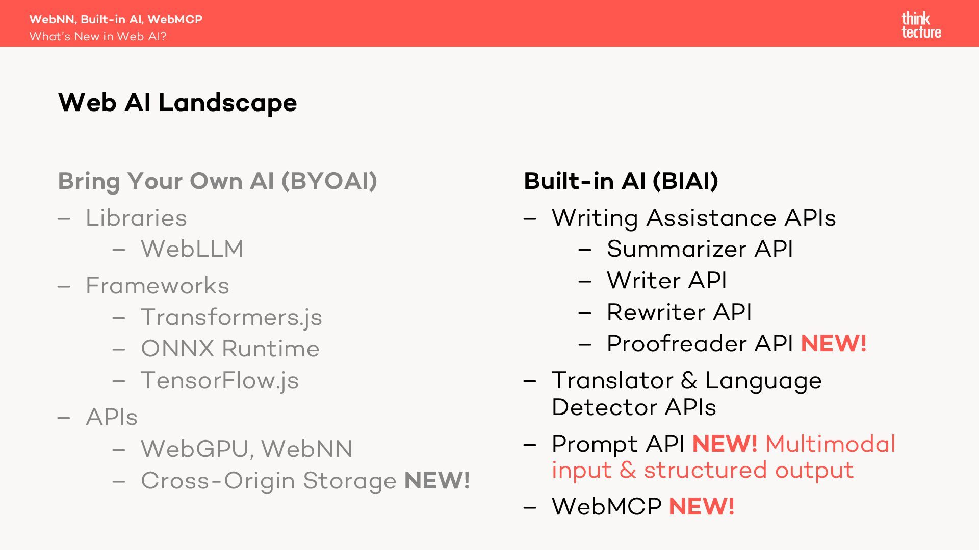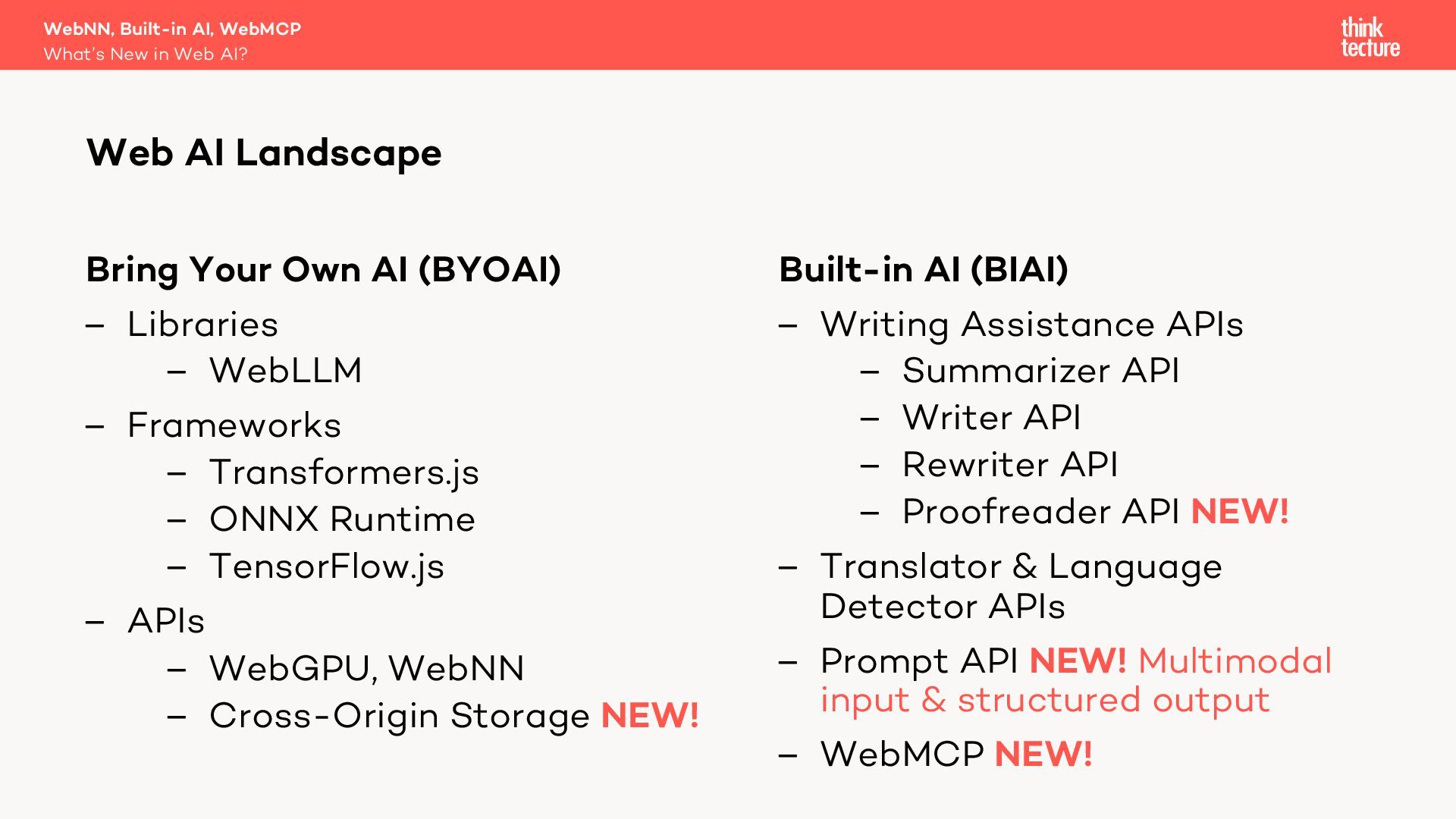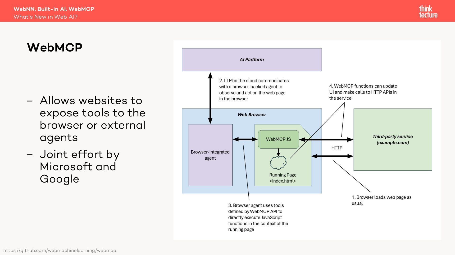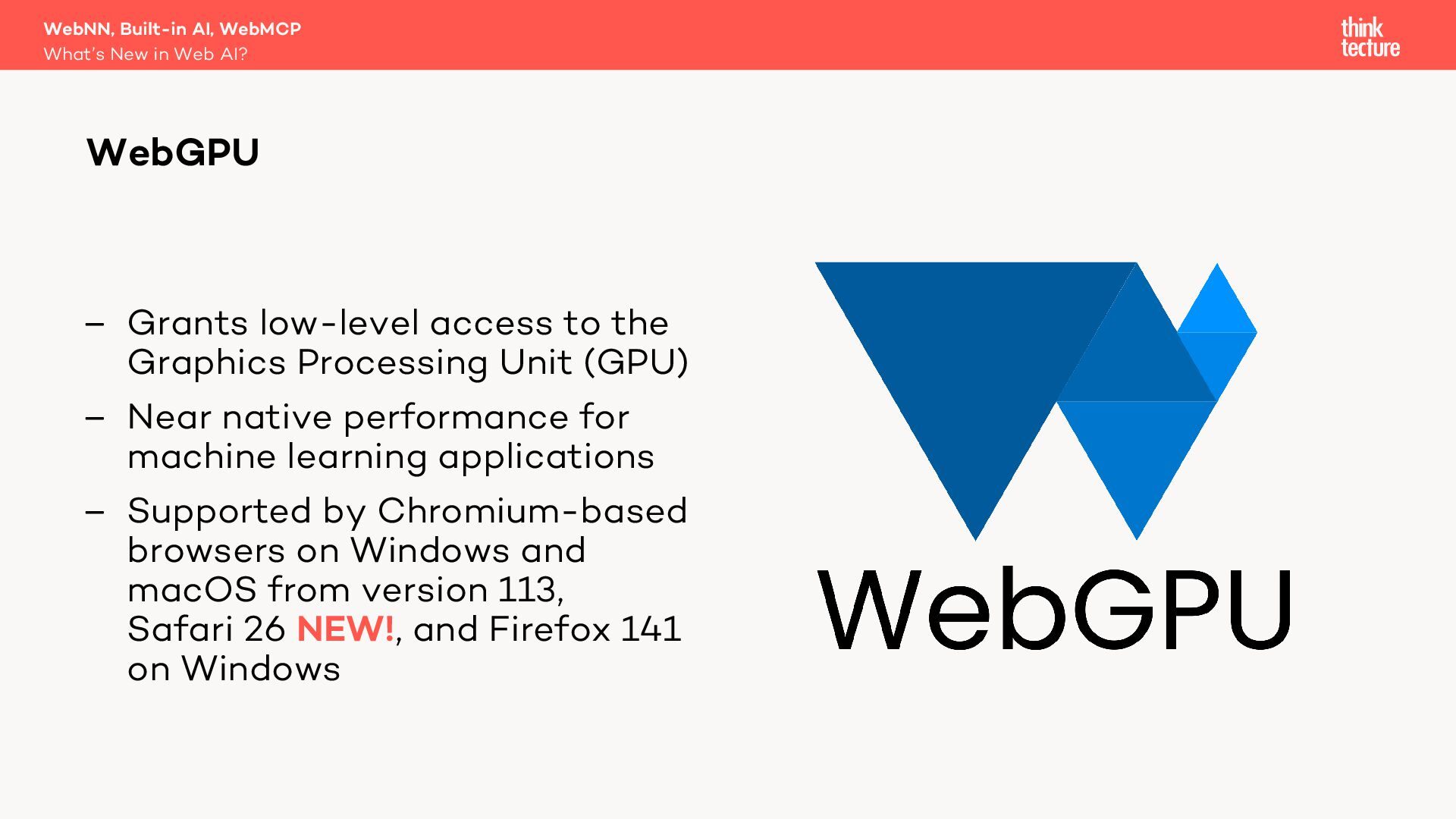 Generative AI is becoming a key part of modern software architecture, and its presence in web apps is growing. As demand increases, vendors and specification authors are working to make AI capabilities more accessible and integrated into the web platform. In this session, Christian Liebel—member of the W3C TAG and WebML Working Group—will share what's cooking behind the scenes in Web AI. You'll get an update on the latest advancements in the WebNN API, Chromium's Built-in AI APIs, WebMCP, emerging developer tools, usage statistics, and the real-world challenges that browser vendors and standards authors are navigating to bring AI to the web.