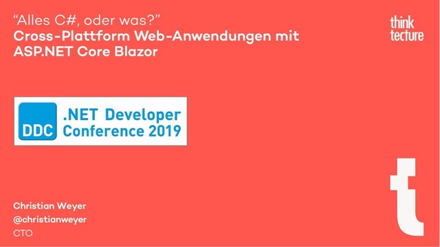 Single Page Applications (SPAs) schreibt man mit JavaScript, vielleicht auch mit TypeScript - is' so! Mit ASP.NET Core Blazor zeichnet sich eine mögliche Alternative für .NET-Entwickler ab. Auf Basis des Web-Standards Web Assembly stellt es Tooling und eine Runtime zur Verfügung, über die man SPAs mit C# entwickeln kann. In dieser Session zeigt .NET- und Web-Veteran Christian Weyer anhand praktischer Beispiele was mit Blazor bereits in einer frühen Vorab-Version möglich ist, vor allem hinsichtlich "Full Stack"-Programmierung für End-to-End Web-Anwendungen. Als Abrundung beleuchtet er neben den Möglichkeiten auch die Grenzen des Blazor-Ansatzes und vergleicht ihn mit den bislang üblichen Herangehensweisen - pragmatisch und realitätsnah.