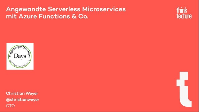 Warum muss es "Serverless oder Microservices" sein? Es sollte vielmehr "Microservices mit Serverless" heißen! Basierend auf einigen der allgemein anerkannten Prinzipien von Microservices können wir serverlose Architekturen und Technologien verwenden, um hochfokussierte Microservices zu erstellen - nennen wir sie mal Nanoservices. Christian Weyer zeigt Ihnen einen pragmatischen Ansatz zum Erstellen von Nanoservices mit Azure Functions, Azure Service Bus, Azure Storage und weiteren Diensten & Tools. Erleben Sie Serverless Azure mit .NET Core, JavaScript und Java in bester Cross-Plattform-Manier in Aktion - jenseits der typischen Functions-as-a-Service-Beispiele.