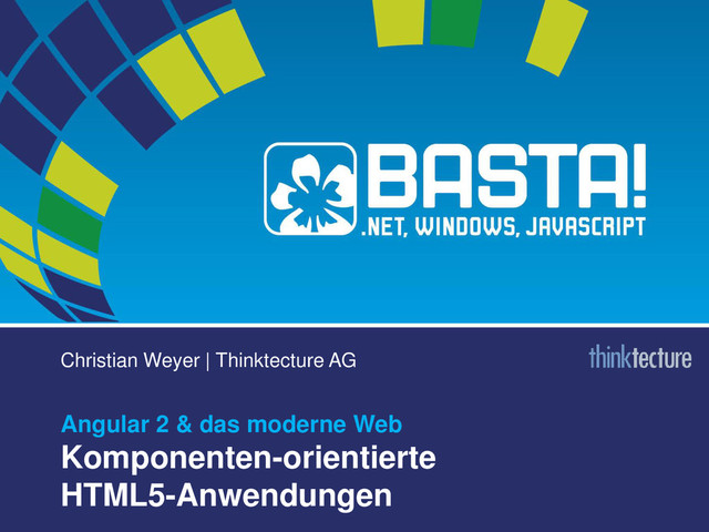 AG • Focus on – Mobile & web-based application architectures – Interoperability, cross-device – Pragmatic end-to-end solutions • Microsoft MVP for ASP.NET (Architecture) ASP.NET Web API / vNext Advisory Board Member ASPInsider, AzureInsider • Google GDE for AngularJS • http://blogs.thinktecture.com/cweyer