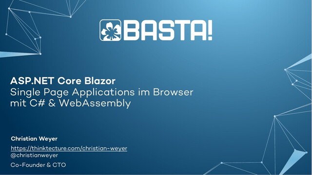 Single Page Applications (SPAs) – bisher implementierte man sie vornehmlich mit JavaScript oder TypeScript, oft im Rahmen eines SPA Frameworks wie Angular oder React. Mittlerweile können nun durch den WebAssembly-Standard theoretisch beliebige Sprachen genutzt werden. Mit dem Blazor Framework auf Basis von WebAssembly hat das ASP.NET-Core-Team einen neuen Kandidaten am Start, um auch praktisch mit C# und .NET-SPAs für den Browser realisieren zu können. Christian Weyer zeigt in diesem Vortrag in gewohnt praktischer Manier anhand von Beispielen, wie Blazor tickt, wie man es sinnvoll einsetzen kann und wo aktuell – je nach Anwendungsfall – die Grenzen liegen.