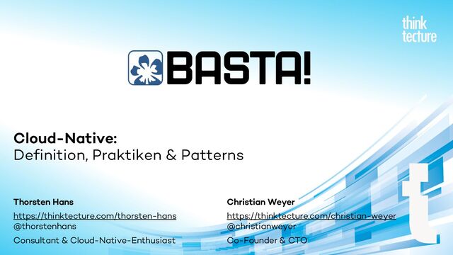 Cloud-Native bedeutet nicht zwangsläufig Kubernetes oder gar Public-Cloud. Vielmehr definiert Cloud-Native eine Reihe von Attributen, die es beim Design und der Implementierung von verteilten Anwendungen zu beherzigen gilt. In diesem Vortrag räumen Christian Weyer und Thorsten Hans auf pragmatische Art und Weise mit den Begrifflichkeiten auf und diskutieren Praktiken, wie man moderne Cloud-Native Anwendungen entwerfen und umsetzen kann. Zudem zeigen sie praxiserprobte und bewährte Architektur-Patterns, mit denen essenzielle Themen wie Robustheit, Skalierbarkeit, Überwachbarkeit, und Konfigurierbarkeit ganzheitlich adressiert werden können. Egal ob lokal, im privaten Rechenzentrum oder in der öffentlichen Cloud: als .NET-Entwickler ist es an der Zeit, sich Cloud-Native anzuschauen.